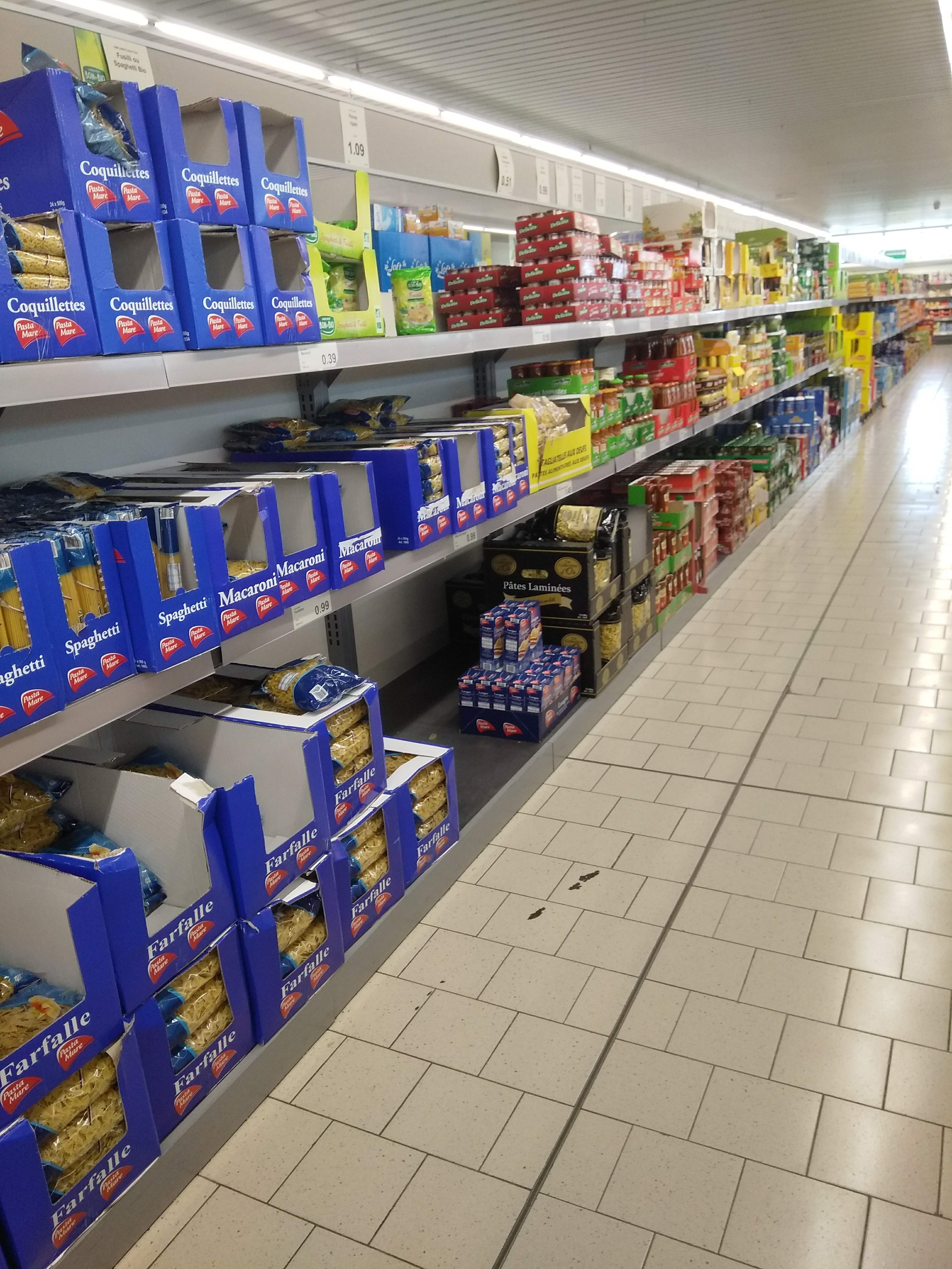 Ce n'est peut-être pas le bon moment pour faire ses courses mais ALDI était approvisionné, malheureusement deux caisses ouvertes sur quatre je crois, ce n'était pas malin.