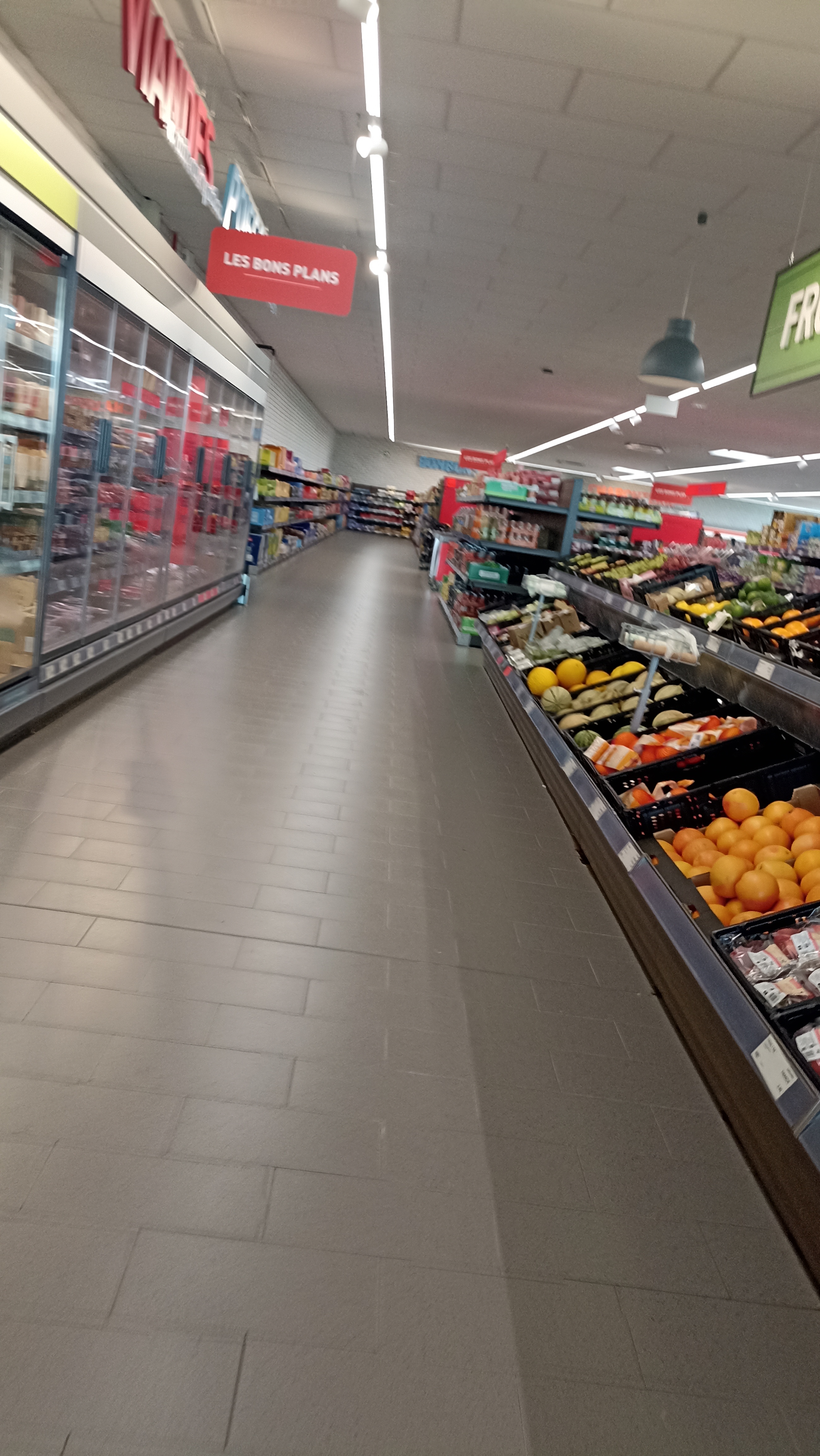 Supermarché beau et propre, bien aménagé, avec un vaste assortiment et des articles bien approvisionnés.
