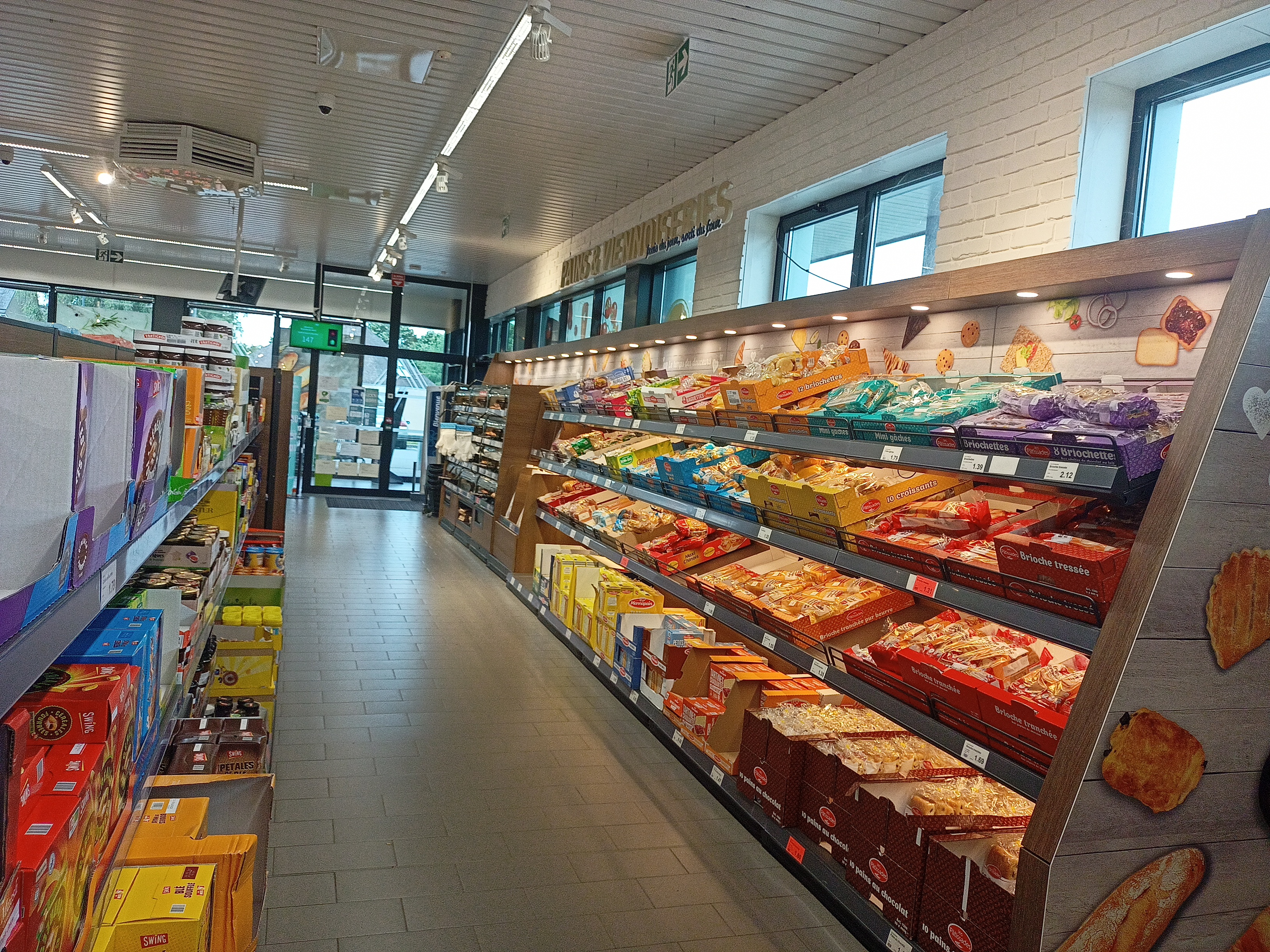 BLa boulangerie à l'entrée du magasin moins cher qu'inter par contre le café est pas terribles et le reste c'est plus cher qu'inter pas loin de 30 centimes de plus pour une plaquette de beurre et la bière à 39 centimes elle a le goût d'eau