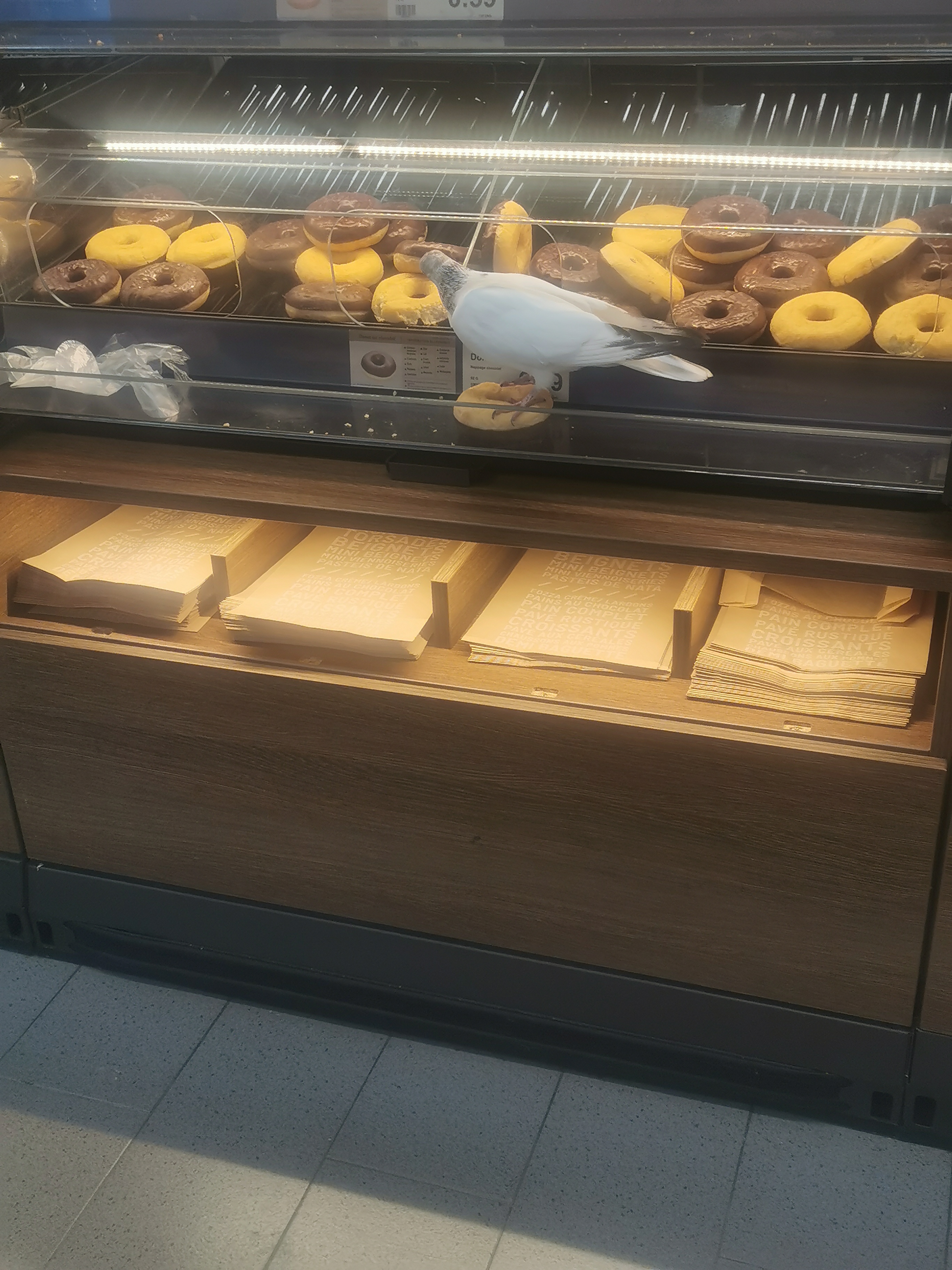 Je trouve ça inadmissible De voir des pigeons dans l'espace boulangerie J'étais intéressée quand j'ai vu ça ça m'a dégoûté Franchement c'est pas normal Bravo l'hygiène