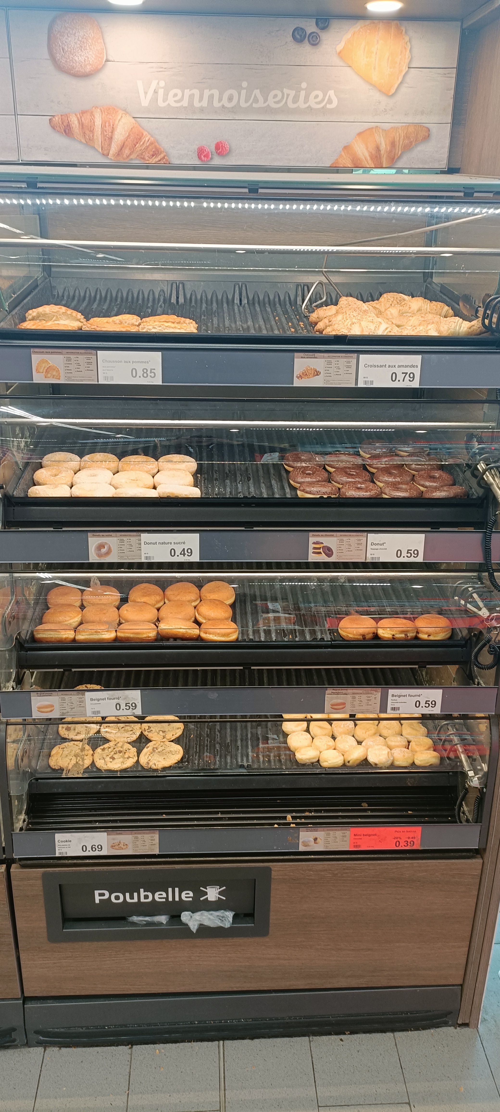 Magasin sale et même pas réapprovisionné. Une poubelle débordante a l'entrée. Et le meilleur pour la fin la femme qui mettais les viennoiseries en rayon qui en fait tomber une et qui la met quand même en rayon, tout ça en me regardant. Ce magasin devrait être fermée