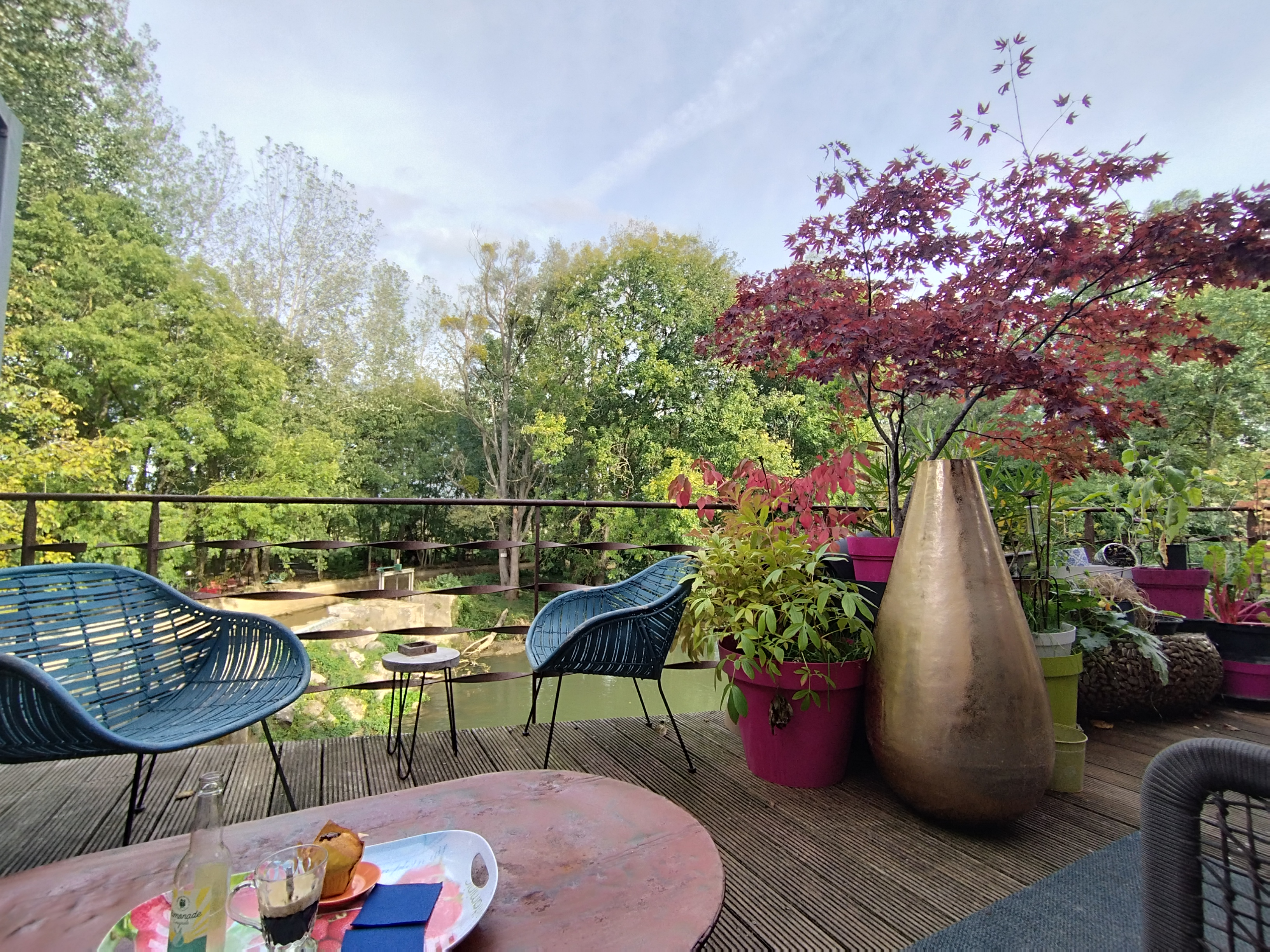 Endroit magnifique avec de jolis objets déco et meubles de belle qualité. Accueil chaleureux des propriétaires. Une terrasse comme on aimerait en avoir, reposante au bord de l'eau, assis dans des fauteuils confortables. Allez j'arrête, enfin j'adore.