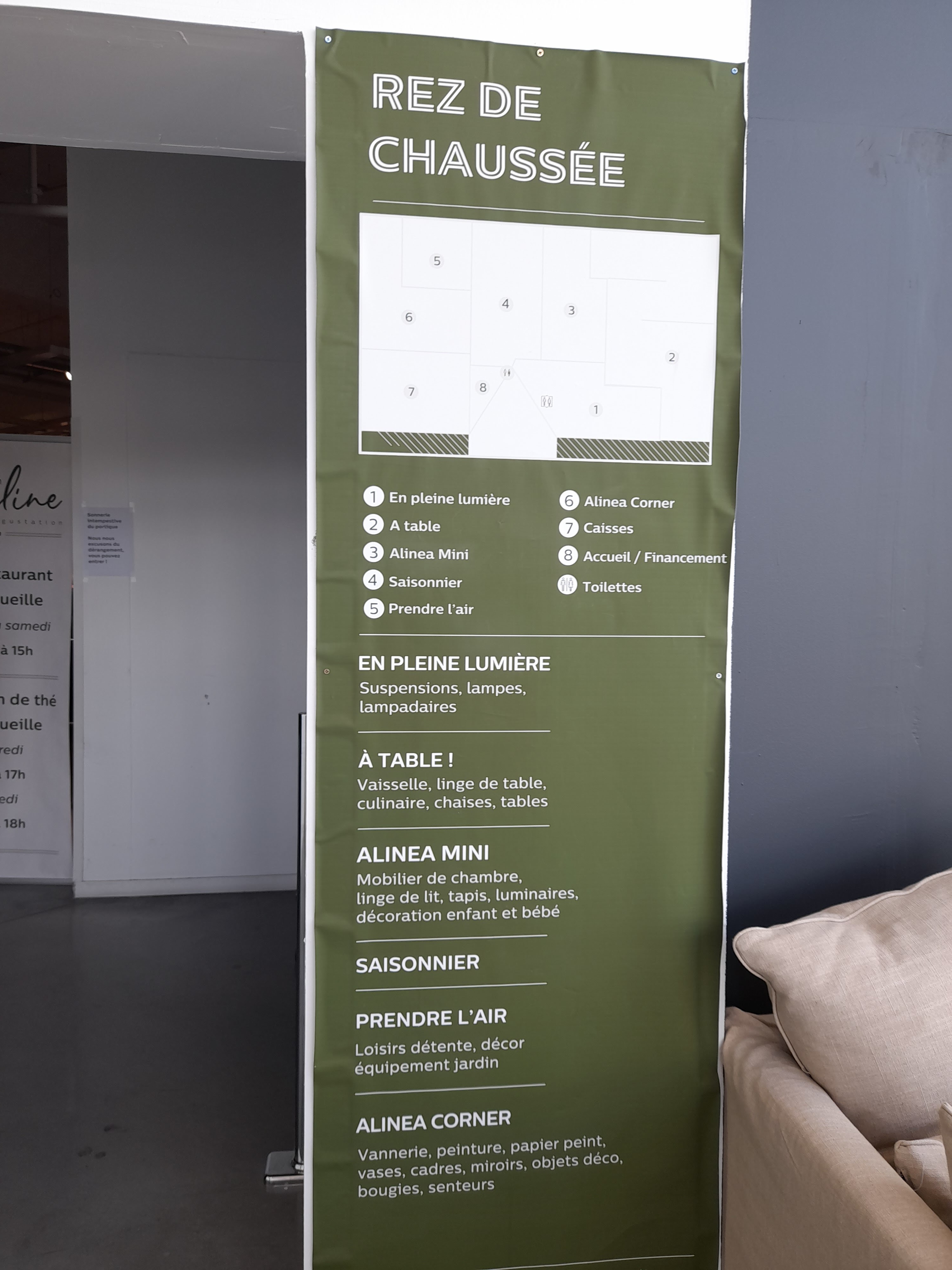 J'avais dans l'idée qu'Alinea était un magasin moyen/haut de gamme vu la réputation et les prix affichés. Mais, je suis réellement déçue de l'accueil, j'ai croisée une dizaine de vendeurs et un seul m'a vraiment accueillit et dit bonjour. C etait le monsieur du secteur mobilier cuisine/bar et merci à lui! Pour moi la base du commerce c'est quand meme l'accueil clientele surtout dans un magasin qui veut se donner un coup de boost (donc des parties en travaux et sombres) avec un flux clientèle pauvre. Dommage que les vendeurs preferent rigoler entre eux 🤷♀️