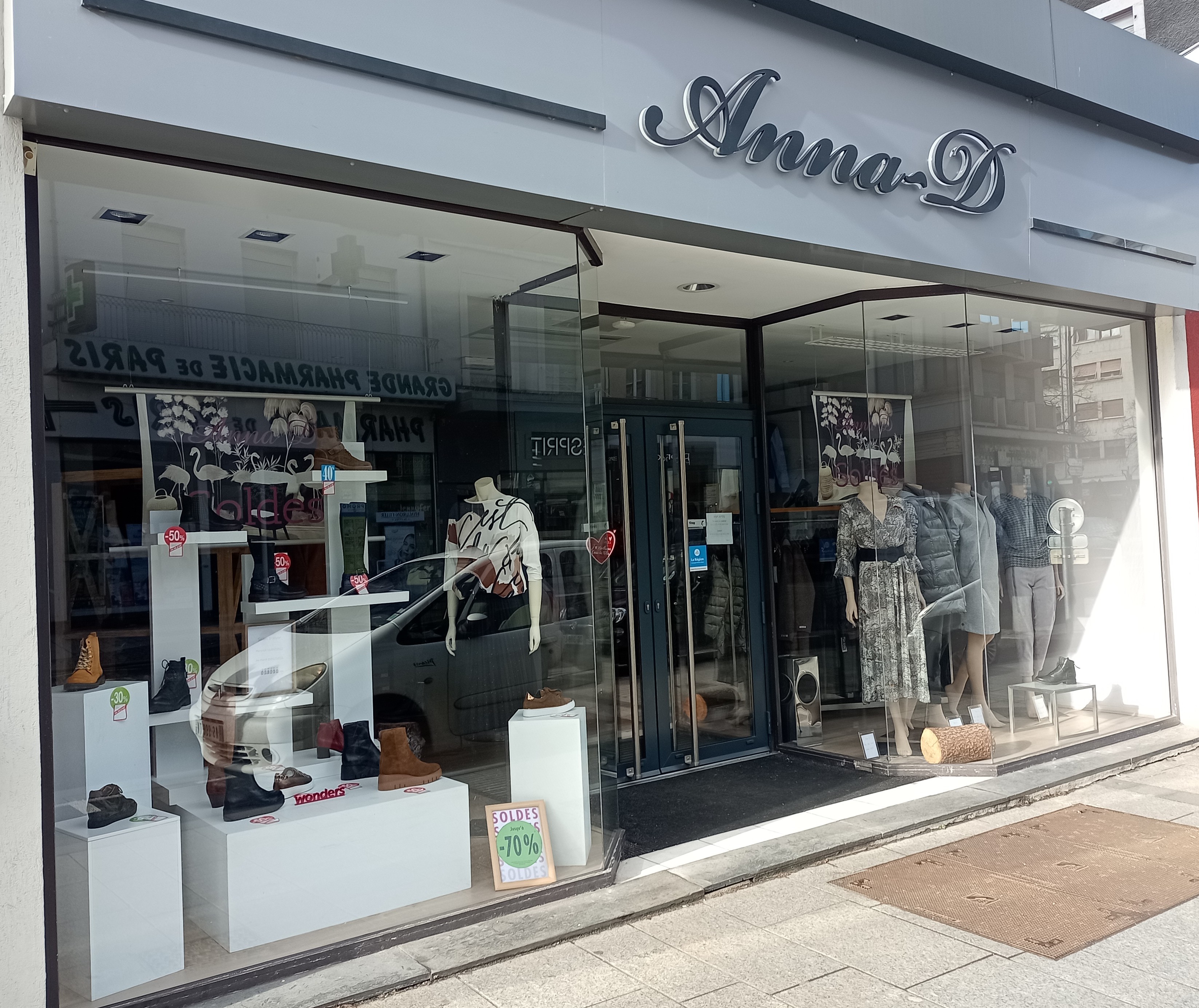 La vitrine est sympathique elle a été refaite récemment. Les affaires, chaussures et accessoires sont bien présentés. Certainement qu'elle invite à rentrer....