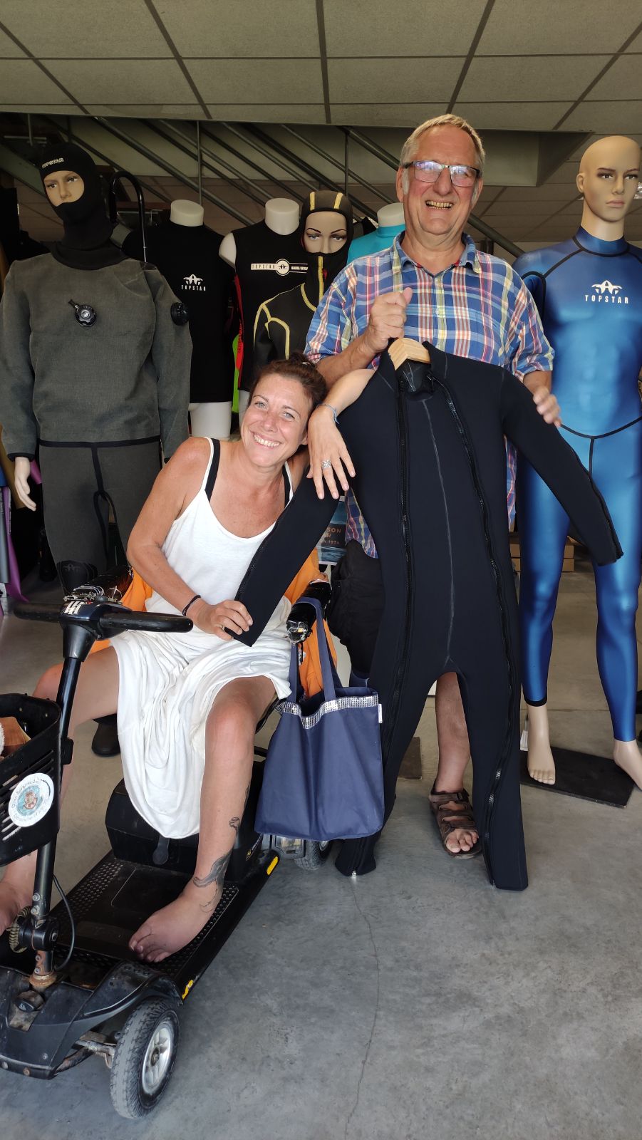 Personne handicapée en fauteuil roulant, j'ai fait faire ma combinaison d'apnée statique adaptée et personnalisée par Topstar. ⭐⭐⭐ Prise des mensurations, essayage, retouches et envoi, le tout dans un délai record, pour être pour les mondiaux handi apnée en novembre. Rapidité de confection, à l'écoute des besoins, prise en compte de tout le confort nécessaire. Qu'on soit star ou pas, @topstar c'est top et pour être au top ! 🤟👌🏊⭐⭐⭐⭐⭐
