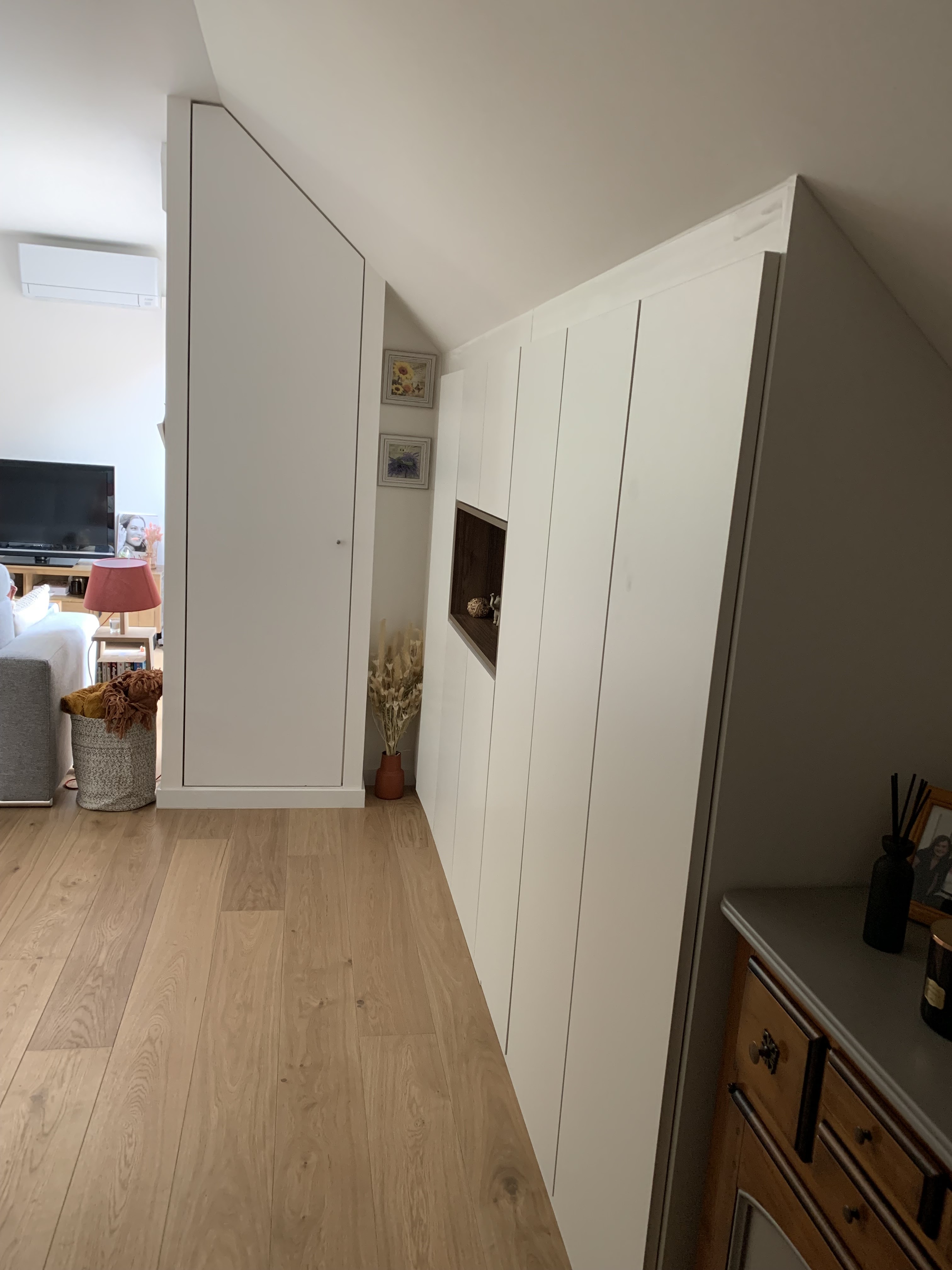 Archea vient de m'installer un placard avec niche et une chambre complète en prenant en compte un espace mansardé. Je suis très satisfaite et heureuse du rendu ! Professionnalisme, écoute, des plans en 3D jusqu'à la réalisation finale, dans des délais respectés, un grand merci à toute l'équipe. Menuisier très pro ! recommande vivement !