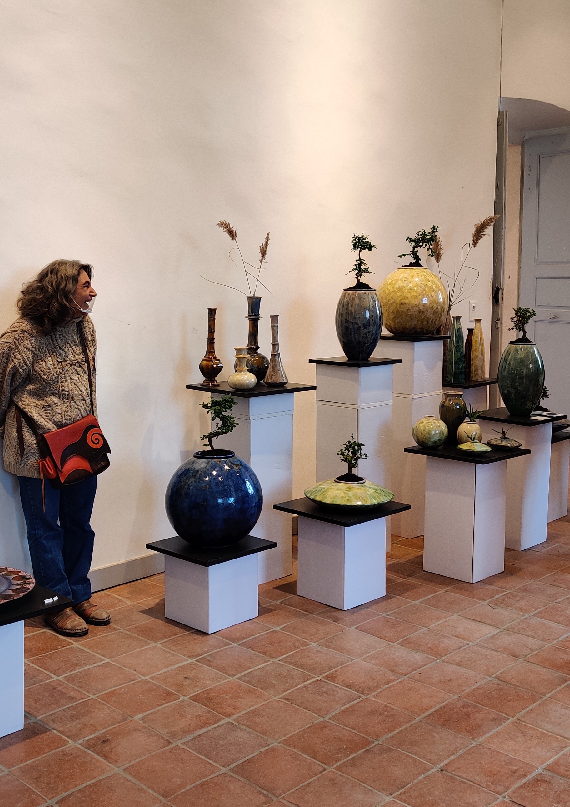 Travail d'Arisanal magnifiquement exposé. Belle conversation avec l'artiste. Beaux objets en céramique traitée au zinc avec de beaux motifs floraux.