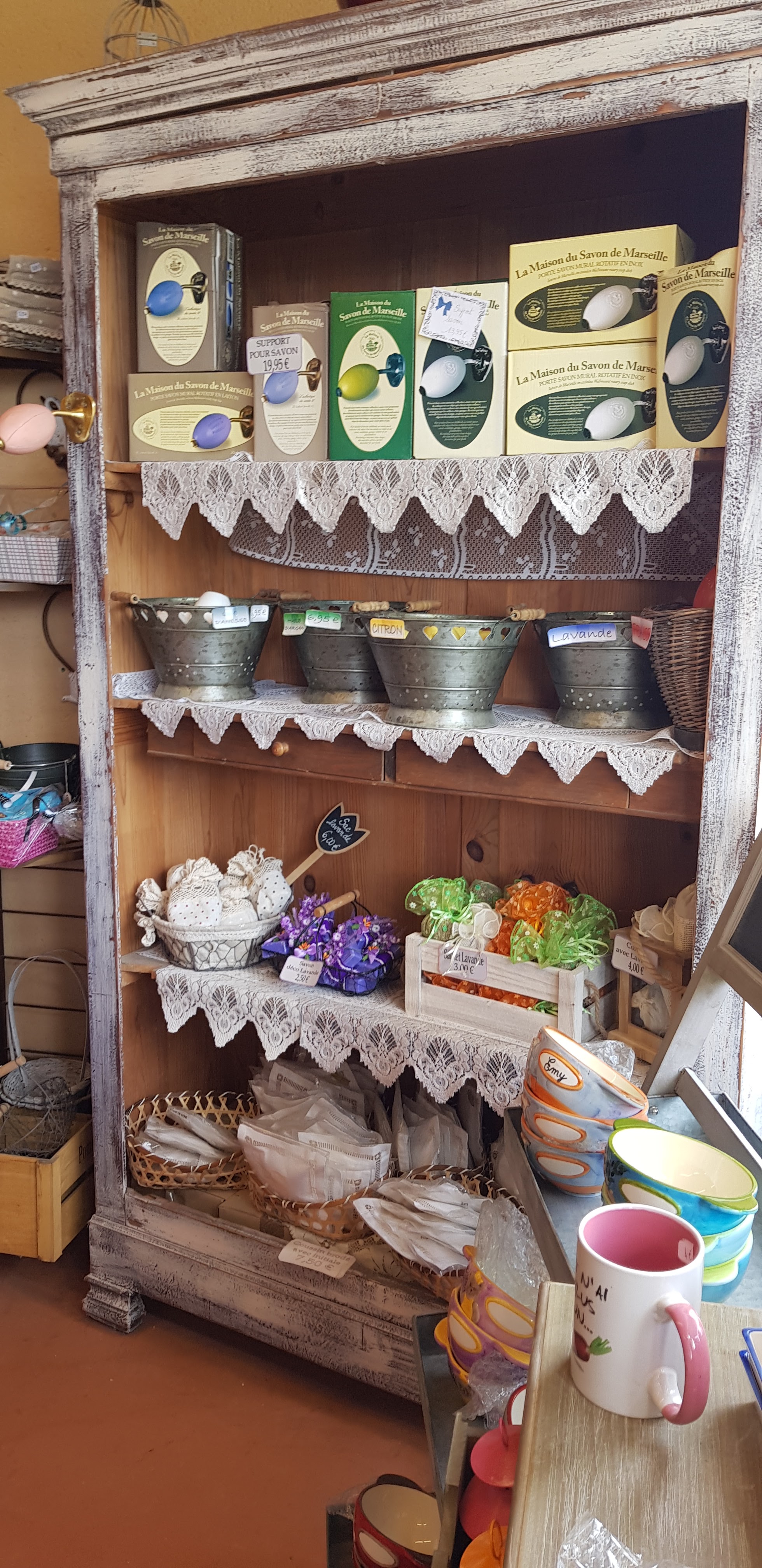 Du savon avec plein d'idées cadeaux. Un musée du savon à côté plus une vitrine qu'un vrai musée, mais c'est louable.