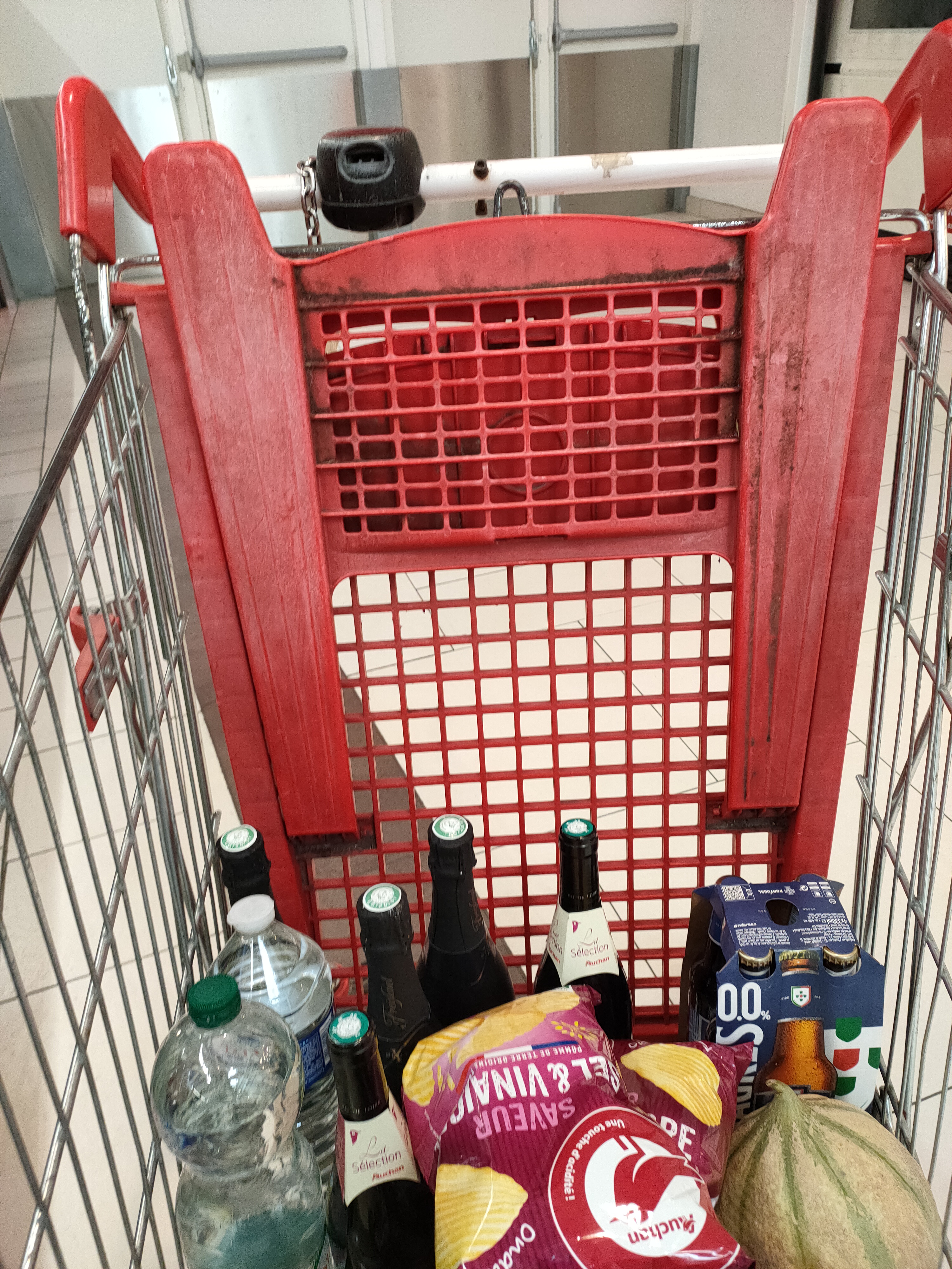 Les caddies sont sales et abimés, heureusement qu'on est accueillis avec une grande affiche annonçant que les caddies sont contrôlés et en bon état