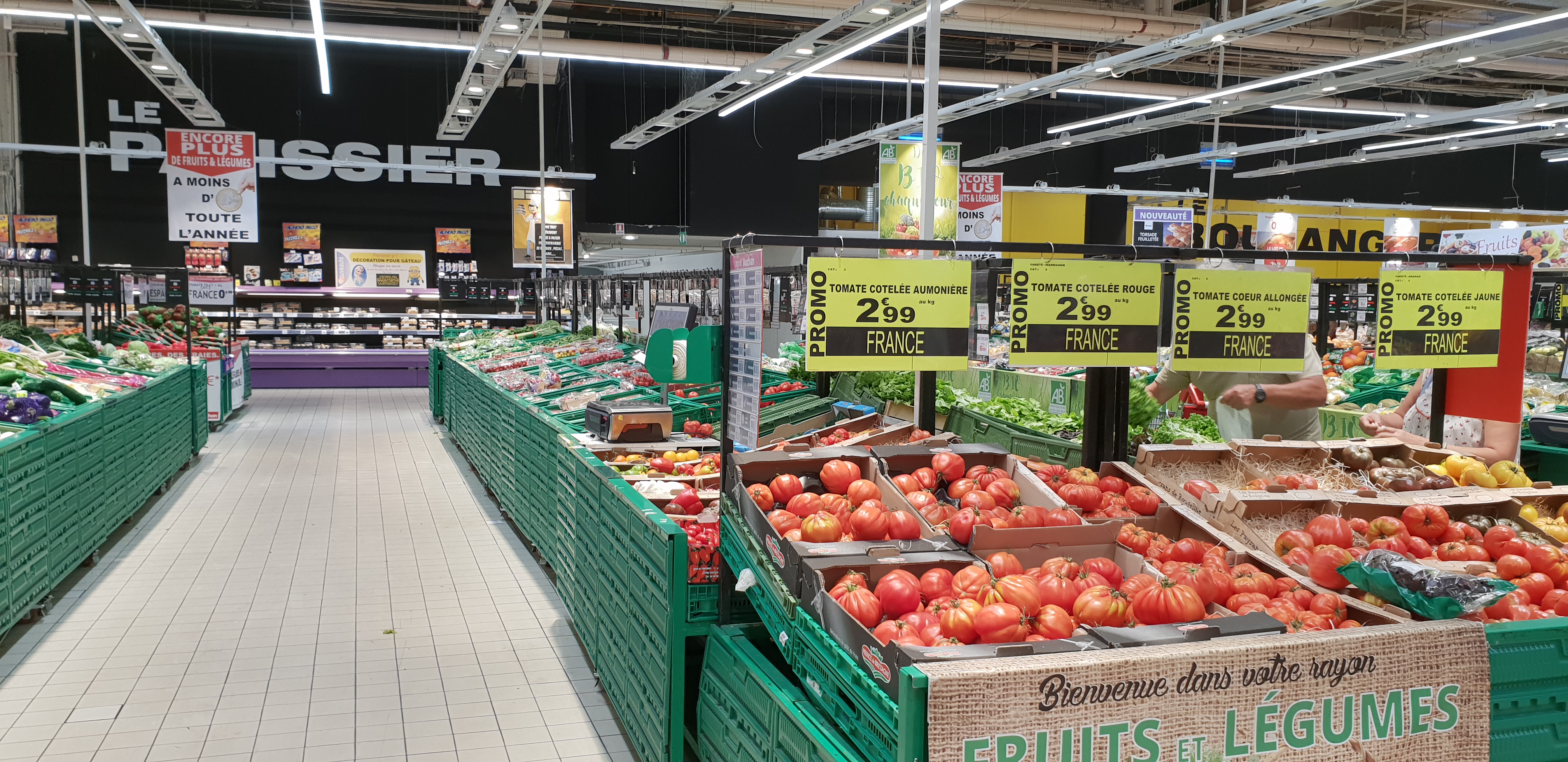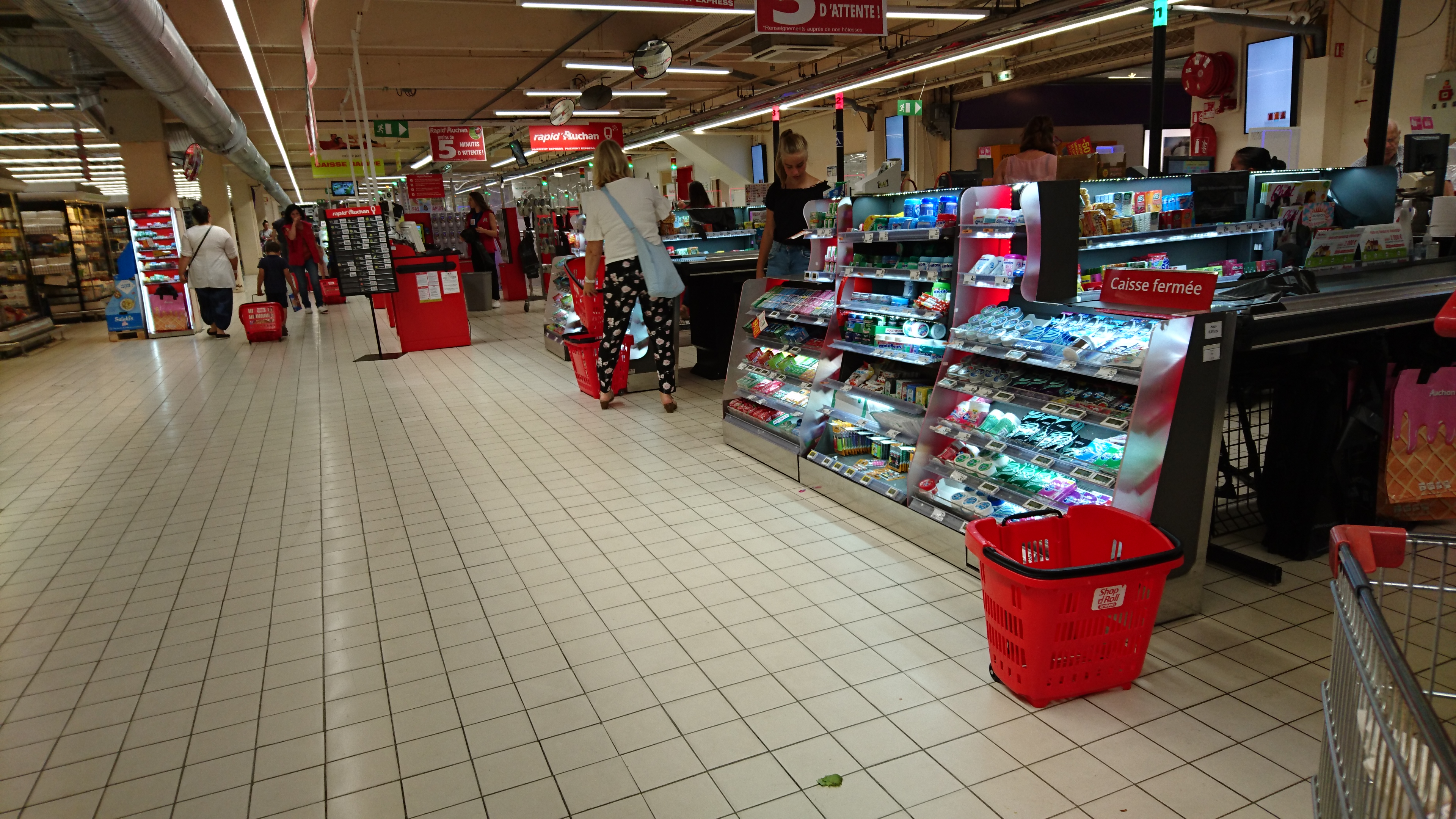 C'est la première fois que j'y vais beaucoup de monde. Il y a des caisses automatiques de 40 articles maxi. Et d'autre de 10 articles max. Grand super Marché. Magasin bien achalandé. Prix assez correct il faut regarder la marque auchan et les premier prix.