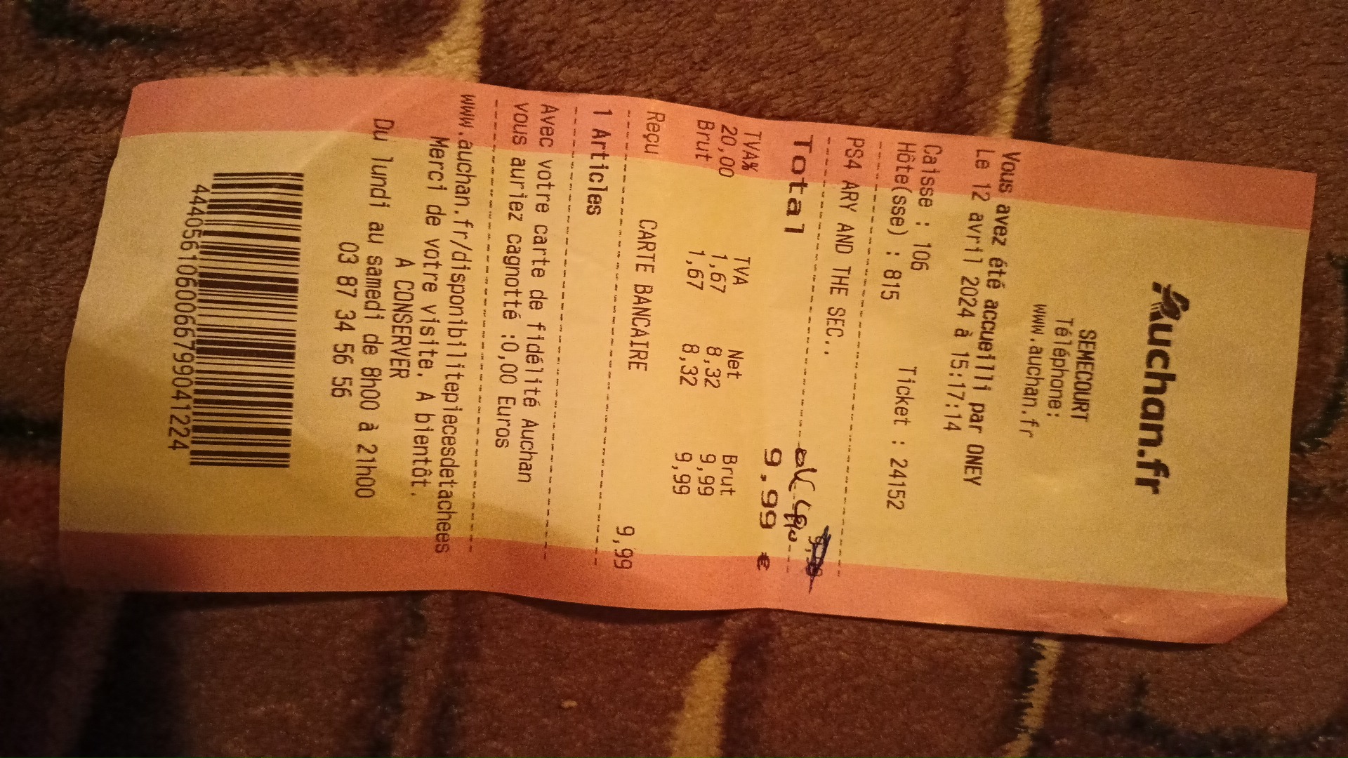Je vais à Auchan 1x par mois pour le gros et a chaise fois y as un souci. Soit les promos passent pas, soit y a des articles en trop sur le ticket.. et la les fruits acheté y a 2jours pourri.. avec la hausse des prix, sa devient compliqué