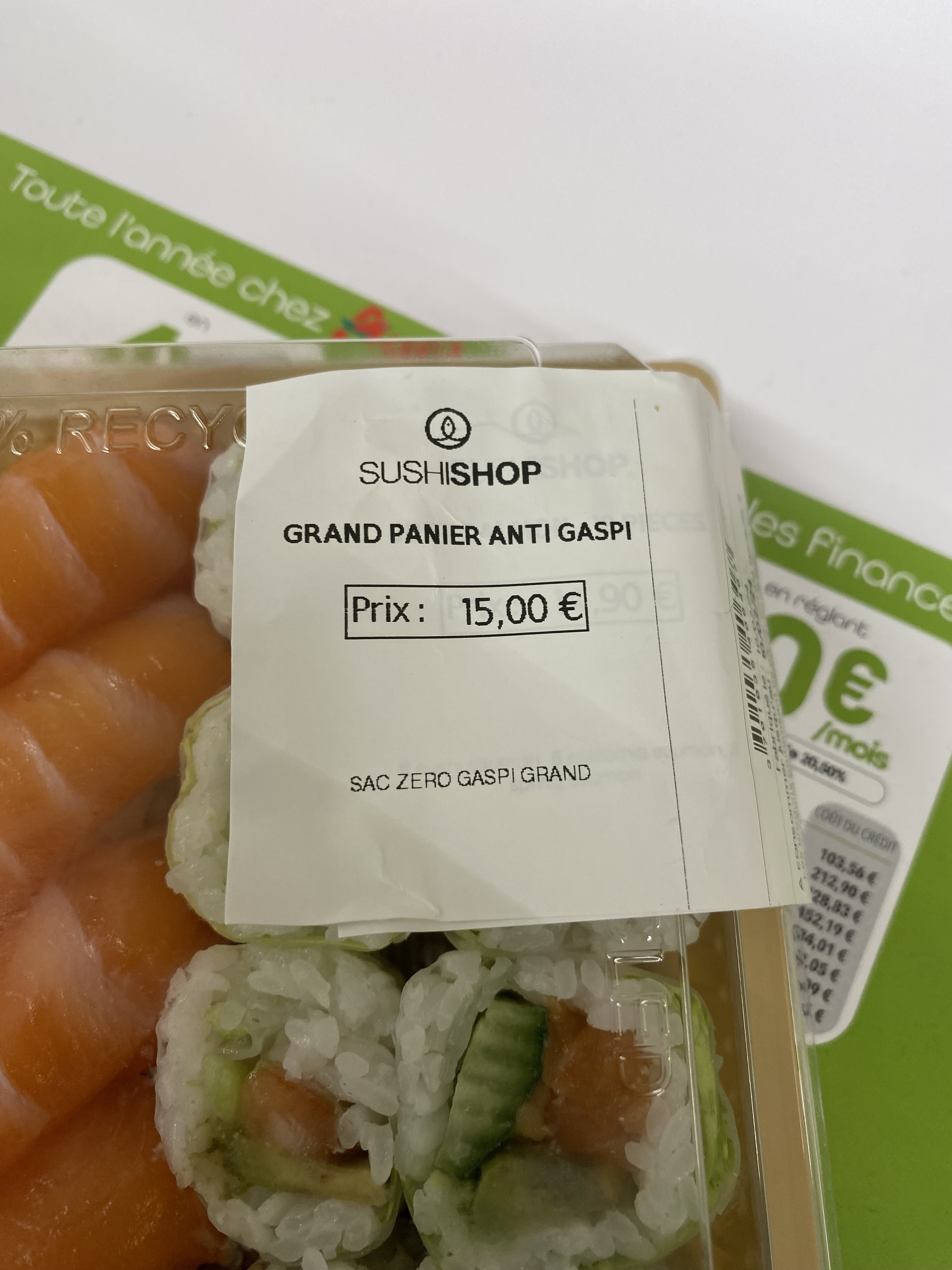 On nous prends vraiment pour des lapins , la semaine dernière voulant acheter des sushis je suis tombée sur quelque chose d’intéressant. l’anti gaspillage est en principe un produit à courte date moins cher pour éviter le gaspillage. et bien non pas chez Auchan , on vous fait croire que c’est moins cher mais en fait c’est le même prix , en regardant de plus près , un lot de deux est au même prix qu’avant . ça fait réfléchir sur les pratiques de la grande distribution. photo à l’appui ci jointe. We really are taken for rabbits, last week wanting to buy sushi I came across something interesting. anti-waste is in principle a cheaper short-term product to avoid waste. well not at Auchan, they make you believe that it's cheaper but in fact it's the same price, looking closer, a set of two is the same price as before. It makes you think about mass distribution practices. supporting photo attached. Be careful in this store.
