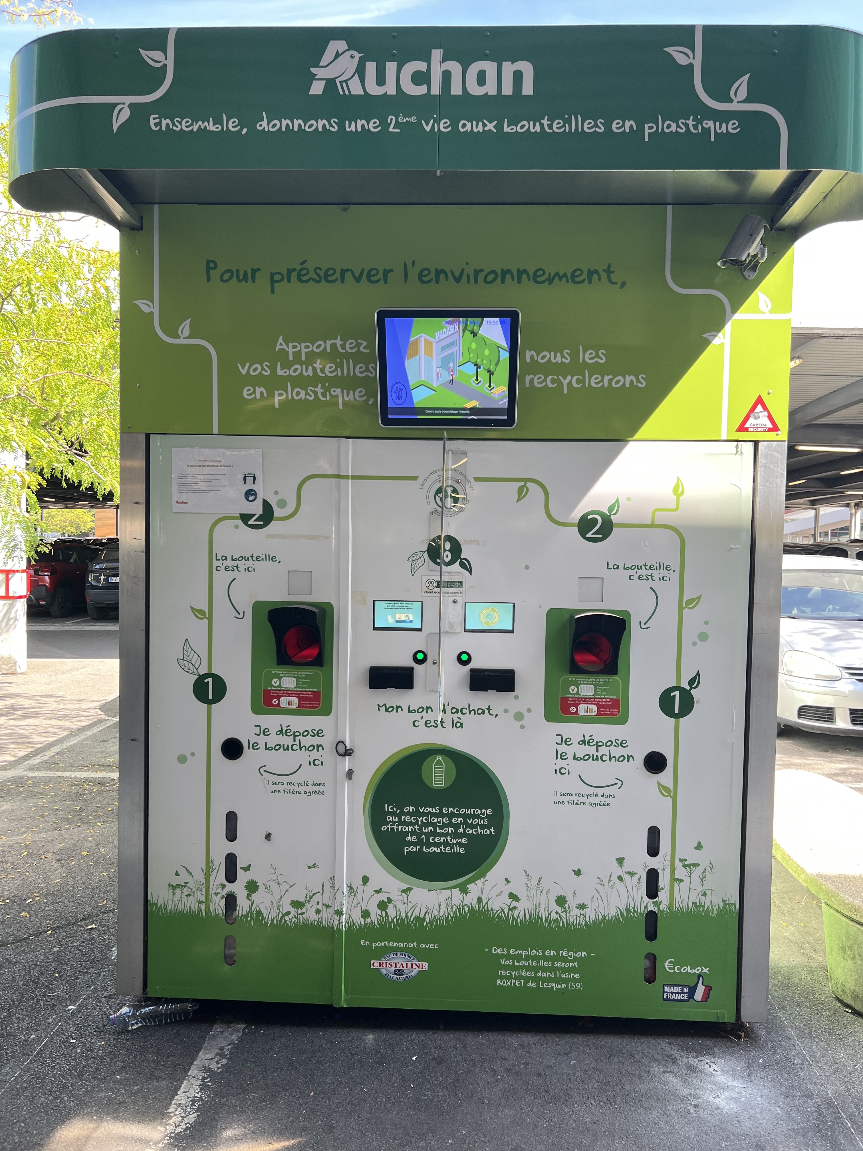 Voici les avantages/inconvénients concernant ce centre commercial : - les points positifs: Ouvert le dimanche matin Un point recharge pour les véhicule électriques Des places biens situées pour les personnes à mobilité réduite (handicapés) Plusieurs portes d entrée pour y accéder Une partie du parking est couvert (pratique en cas de pluie) Possible de reprendre ses bouteilles en plastiques (voir photo) démarche eco responsable Des bons sushis frais Un grand choix varié - les points négatifs : Certaines emplacements de la galerie ne sont pas repris (plus de bar par exemple) Auchan : Un poil plus cher que les enseignes concurrentes (testées sur de nombreux produits) Le rayon legume est parfois « vide » en partie et la fraicheur des legumes laisse parfois a desirer. (En tout cas c etait le cas en ce 1er aout 2022) Si vous avez aimé mon avis ou mes photos merci de cliquers sur « utile »