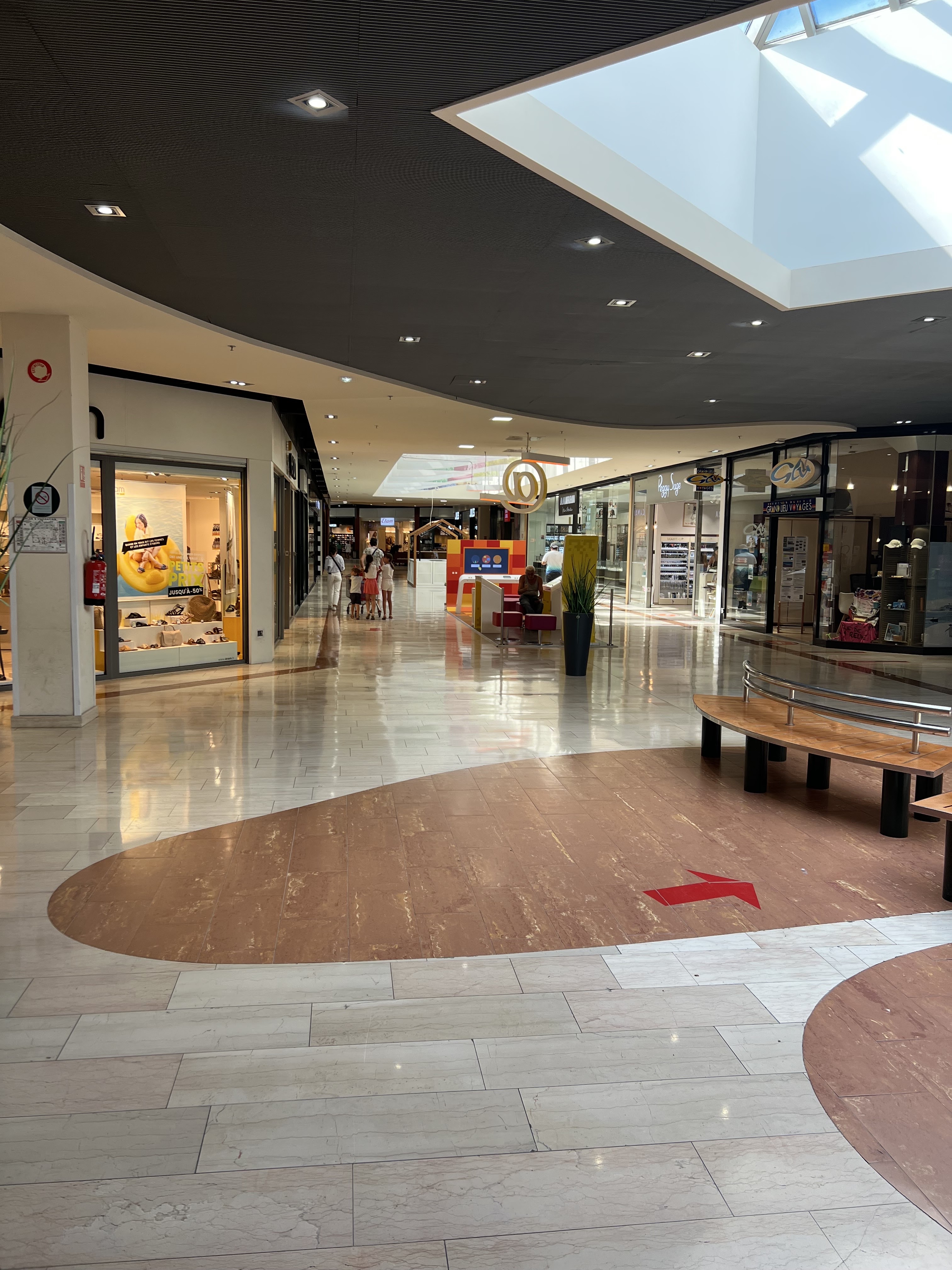 Galerie marchande quasiment vide. Plusieurs magasins fermés en fin de matinée. Sombre et pas accueillant.