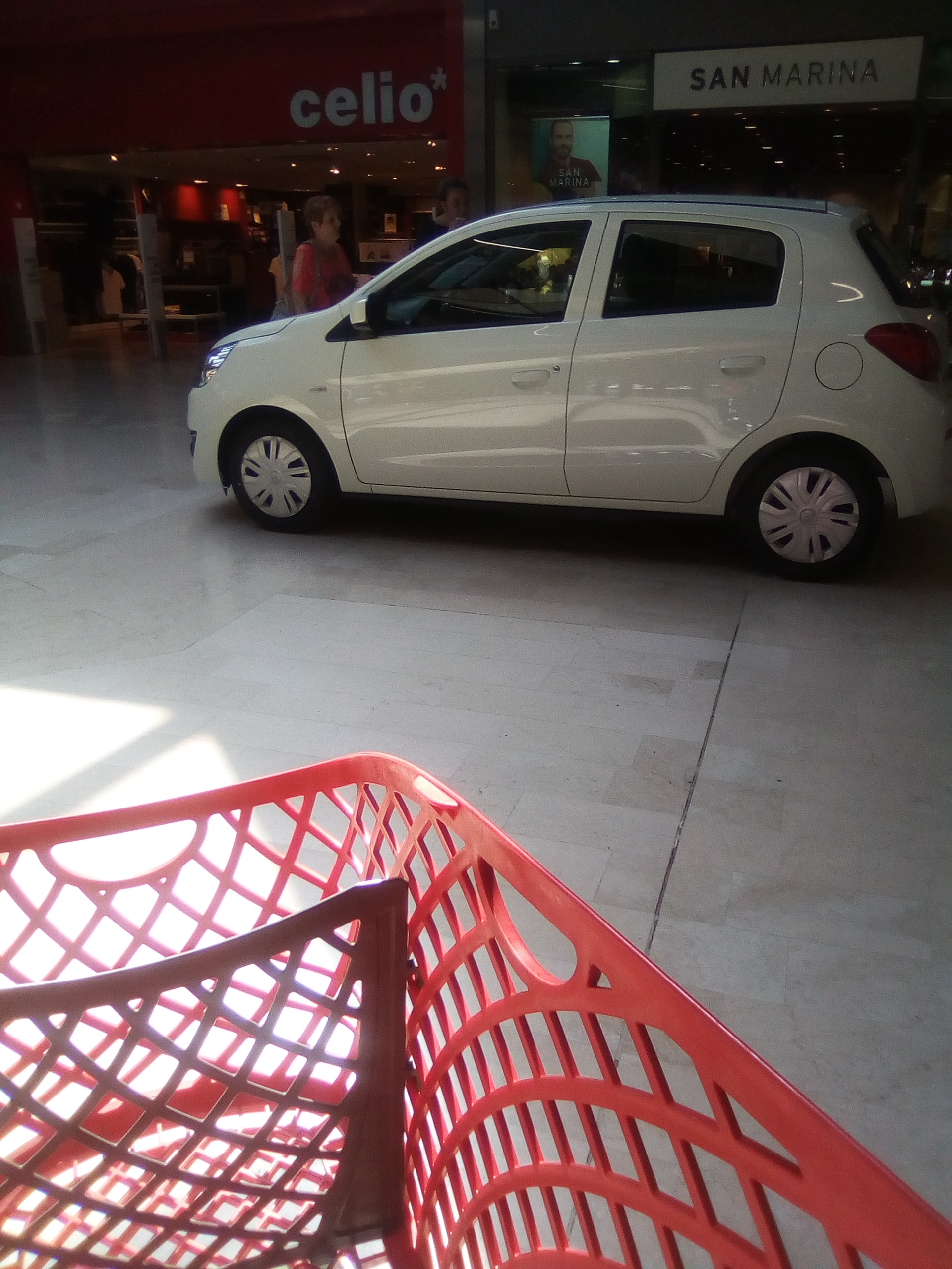 Chariots avec cosy intégré inutilisables !! Pleins de crottes d'oiseaux!! Et toiles d'araignées. Non protégés !! Faire ses courses avec 1 poussette+chariot rien de plus compliqué alors qu'il suffirait de les protéger et entretenir, pas seulement changer les étiquettes de pub dessus ! J'aimerai pouvoir publier les photos prises !