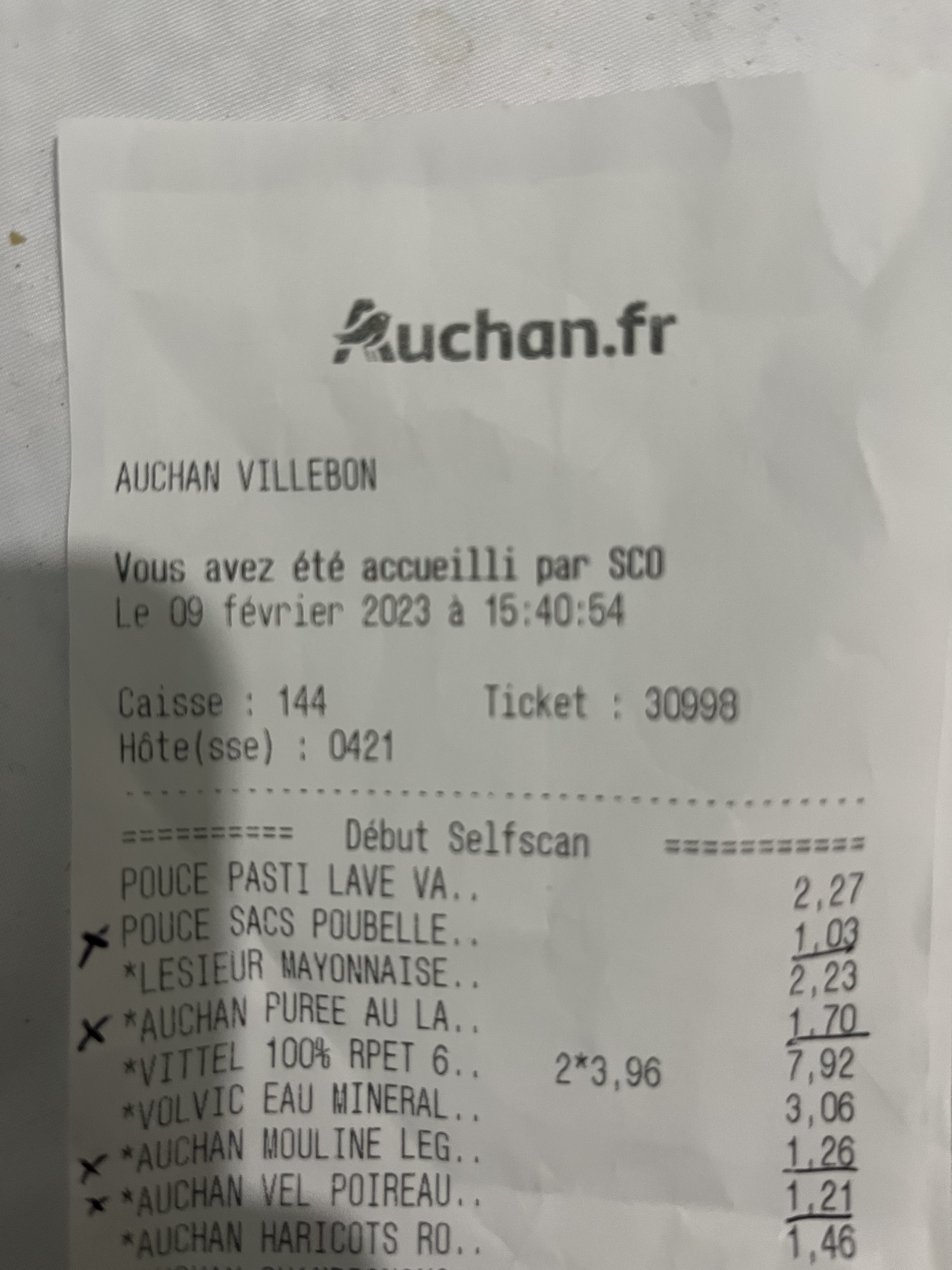 Alors par où commencer, je suis plus que déçu . Je vais à Auchan villebon depuis plusieurs années et je ne vais que là. Je passe à la caisse libre service je Bip tous mes articles et en dernier un petit maillot de bain que j’ai pris pour ma fille, je paye je sors et voilà qu’un vigile vient vers moi et me dis que je n’ai pas passé le dernier article ,le fameux maillot, je lui dit que si , il me dit non et me montre une tablette avec mon sois disant ticket dématérialisée , il me dit il n’y à rien à 7,99 bien sûr il ne prends pas son temps il me le montre vite fait , alors dans le doute je m’excuse et je lui dit et bien que je le paye tout de suite, il me dit non vous allez être fiché car c’est un vol, et là il m’emmène dans une petite salle et je lui demande encore de vérifier ce qu’il ne fait pas , il remplit sa fiche et me dit que si ça recommence je ne pourrai plus venir faire mes courses à Auchan c’est ma dernière chance, il me ramène pour payer l’article et bien sûr cela devant toutes les personnes qui me regardaient d’un aire accusateur , je lui montre également en même temps que sur ma cagnotte j’ai presque 50 euros pourquoi voler et je re précise que je fait mes courses pour une famille de 6 personnes toutes les semaines, je repart je vérifie mon ticket sur internet je vois que j’avais bien payé le maillot de ma fille!!!!! C’est vraiment honteux de faire passer les gens pour ce qu’il ne sont pas , vraiment. On m’a remboursé et j’ai eu le droit à des petites excuses, mais ça ne m’enlèveras la honte qui m’a été infligée. Dommage