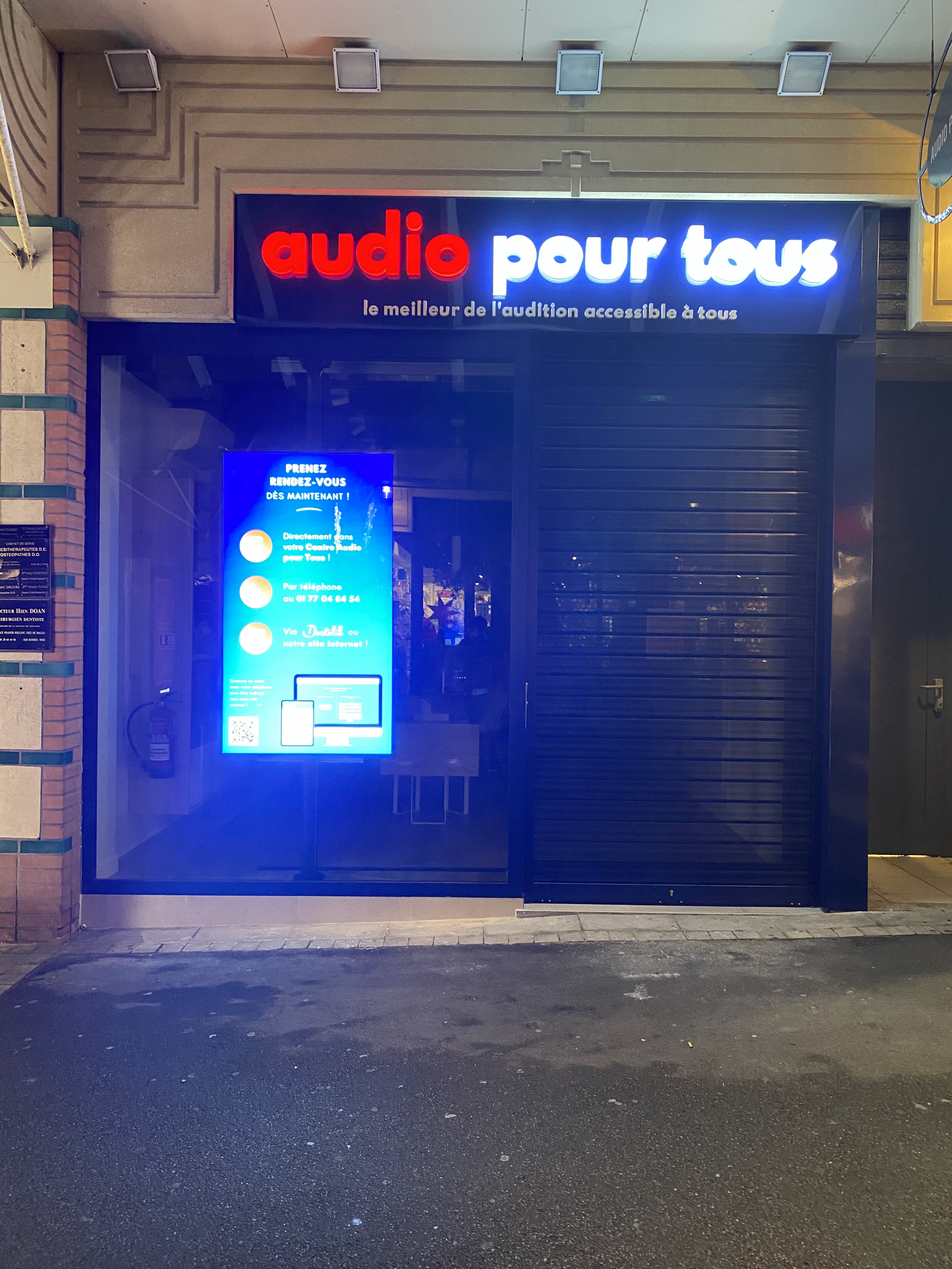 Après une expérience de 4 années avec des prothèses Audika, j'avais envie de connaitre autre chose. J'ai été dirigé vers Audio pour tous de Montigny-le-Bretonneux après avoir contacté Audibene (très pro également). J'y ai trouvé exactement ce que je recherchais, un service de proximité, très disponible (jours d'ouverture plus nombreux), un excellent accueil et une très bonne compétence ; 4 rendez-vous de mise au point avec des moyens techniques modernes, etc. Merci Carla. Les appareils proposés sont nettement mieux, connectés (TV, smartphone), multi-programmes, etc. Mais pour être objectif, peut-on comparer des prothèses d'il y a 4 ans avec celles d'aujourd'hui ? Et bien entendu, un tarif très correct pour des prothèses haut de gamme avec les options ; cerise sur le gâteau, Audio pour tous est partenaire du réseau Santéclair ce qui me laisse un reste à charge modéré. Bref, je suis très satisfait d'Audio pour tous. Je les recommande.