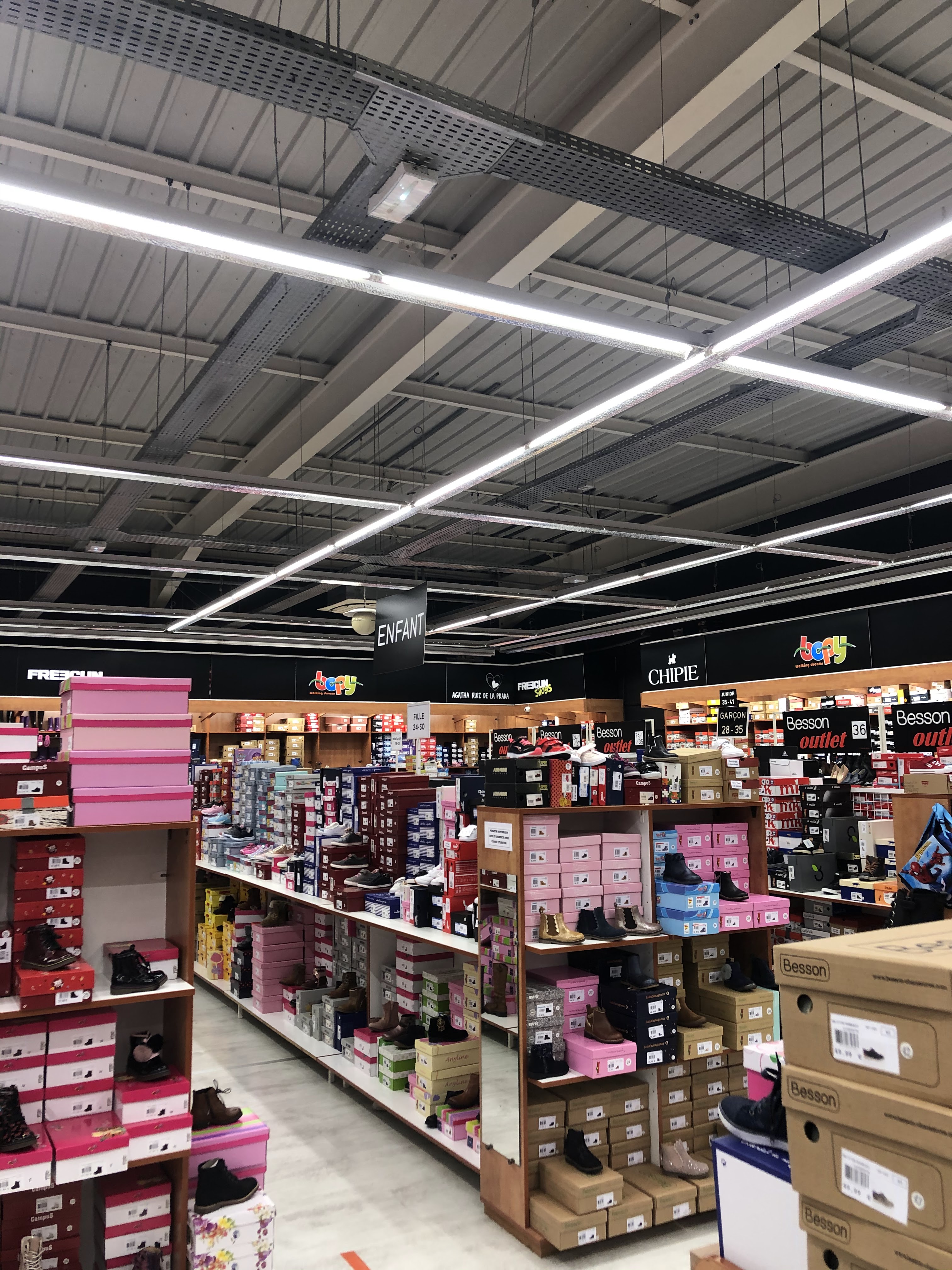 Ouf, je suis ressortie de chez Besson avec cinq paires de chaussures 😄😄. Plein de mini prix entre 12 et 30€. Je vais pouvoir jeter les vieilleries 😄😄. Il n'y a pas de panier mais, si vous avez des boîtes plein les bras, demandez à la caisse, la personne vous les mettra de côté et vous pourrez continuer tranquillement vos essais