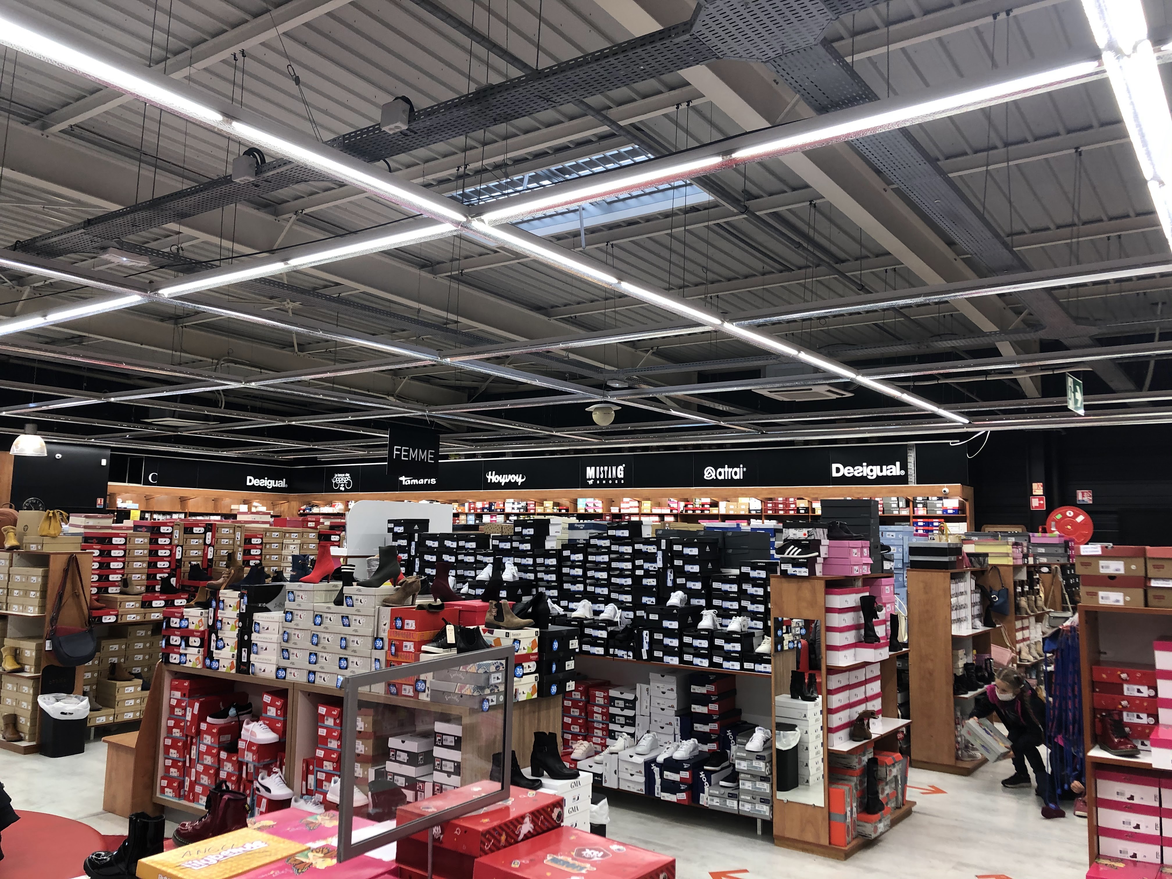 grand choix de chaussures homme, femme, enfant. Il y a de nombreuses marques. En janvier, les soldes démarrent à fond avec des remises jusqu'à 70%. Je recommande d'y aller régulièrement