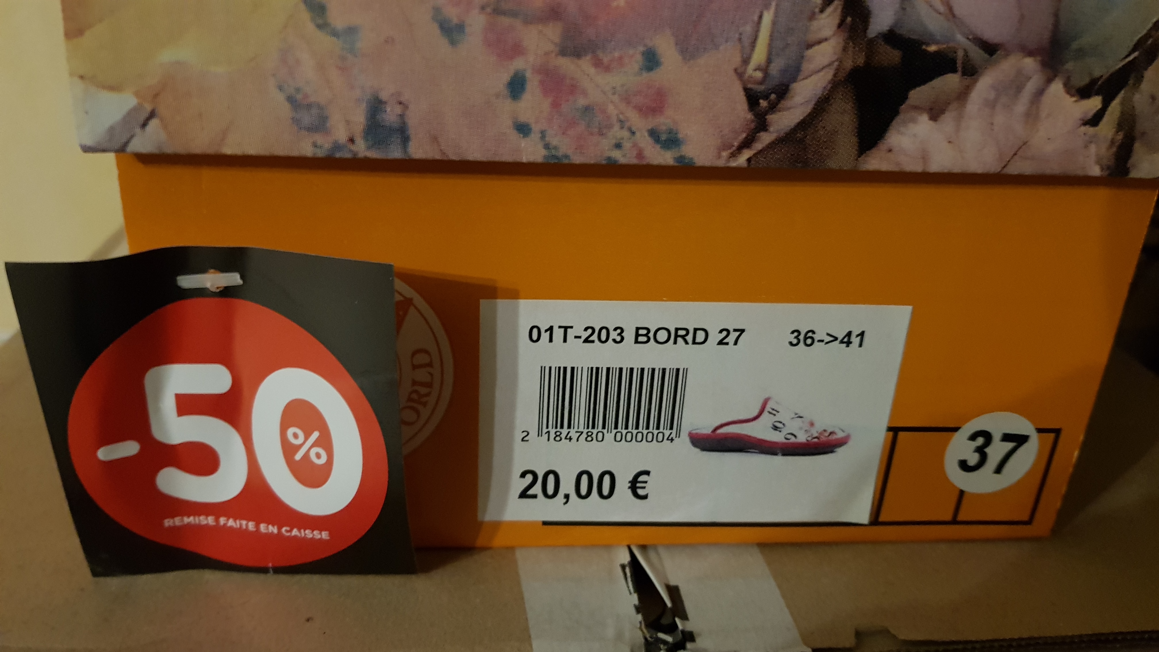 These are second quality shoes for malls. They are not high street goods. Banners on the top of the shelf are not the make of the stuff in the shelf. The smell of the shop is not acceptable. La qualité est du 2eme choix pour grande surface. La marchandise n'est pas celle des magasins de premier choix. Les enseignes en haut des étagères ne correspondent pas à la marchandise exposée. L'odeur du magasin n'est pas acceptable