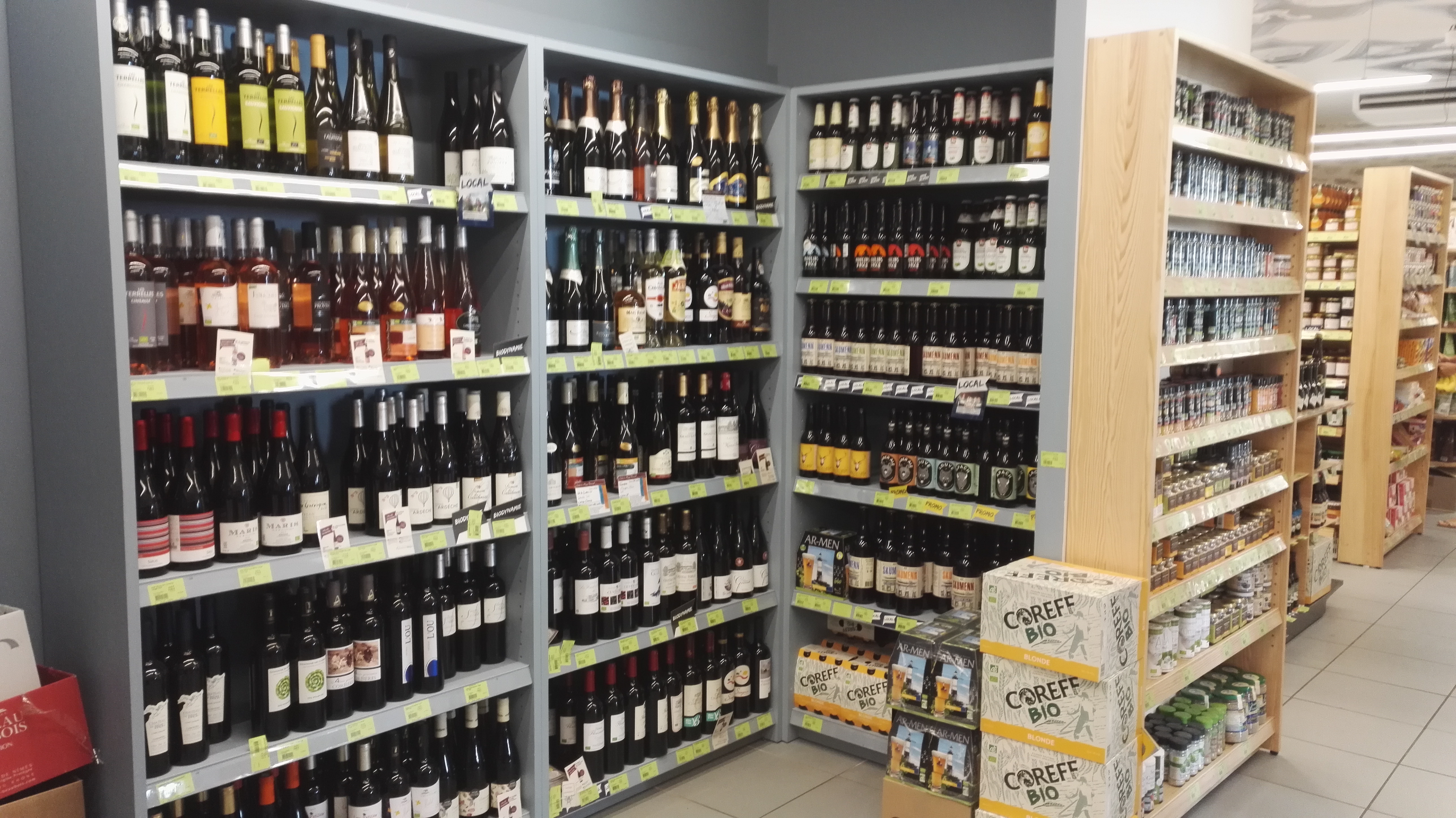 Une sélection des produits courants habituellement proposés dans les grands magasins Biocoop, avec l'avantage de la proximité. Beaucoup de produits sont proposés en vrac, notamment produits ménagers, cosmétiques, eau et vin.