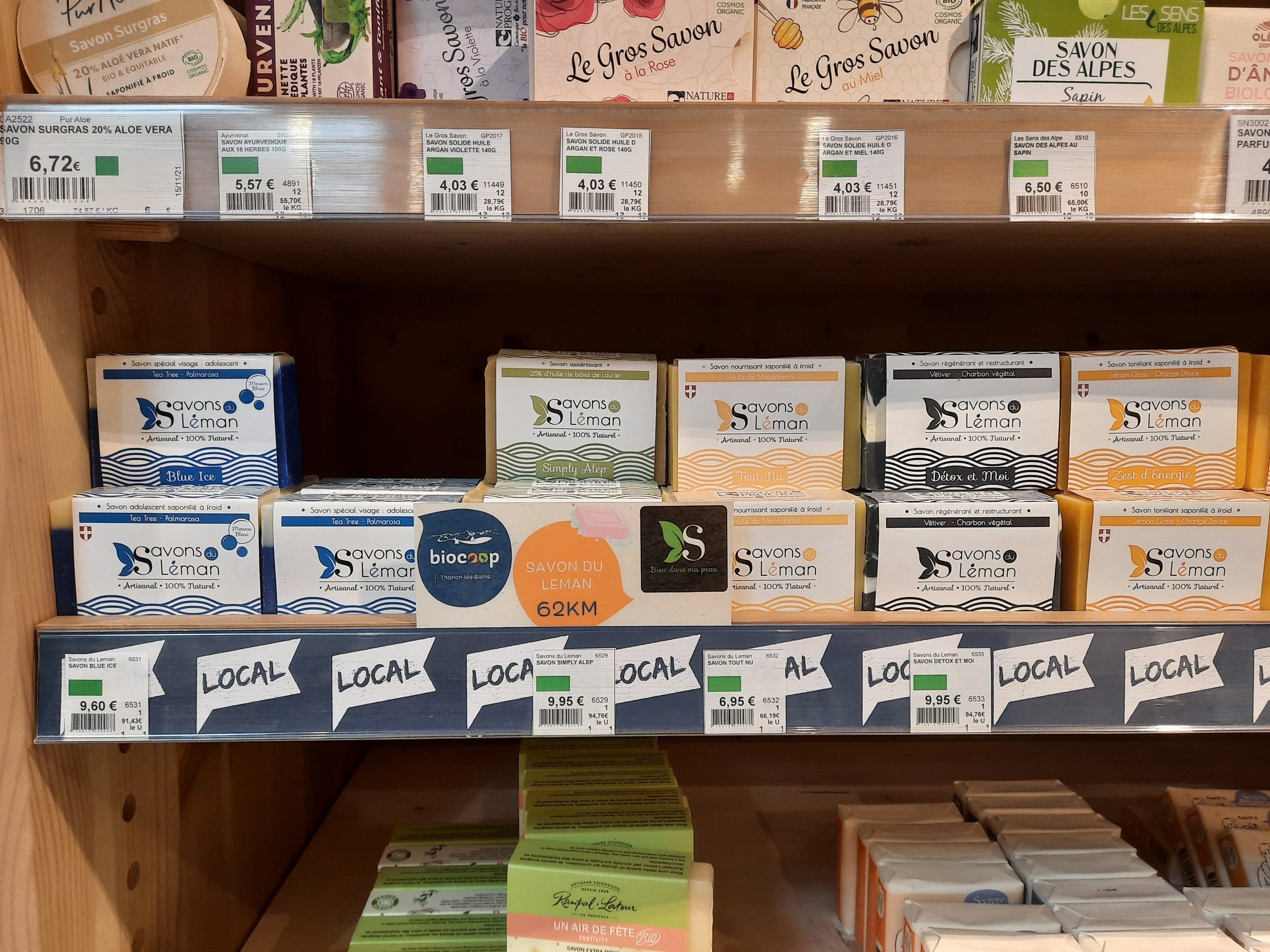 Magnifique ! Vous n'êtes pas dans un super marché ici mais bien dans un marché avec même un petit café en plein centre. Le concept est vraiment novateur, j'adore ! Bravo aux 2 responsables. Et bien sûr on retrouve les Savons du Léman, un savon pour chaque type de peau, c'est parfait !