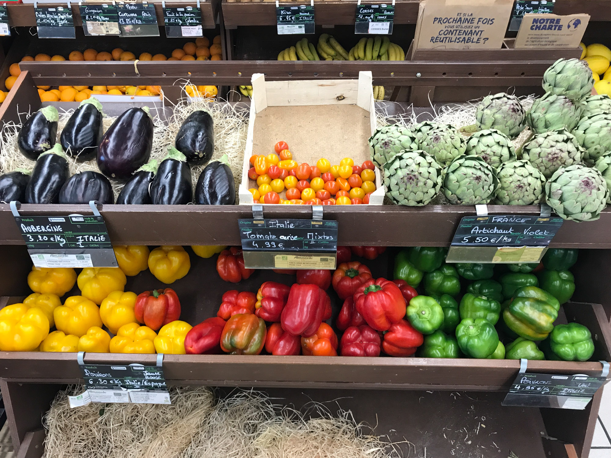 Fouillis et des produits bio , soit, mais qui viennent souvent de bien trop loin dans des emballages plastiques et suremballés, il faudrait se différencier du bio qu'on trouve en GMS