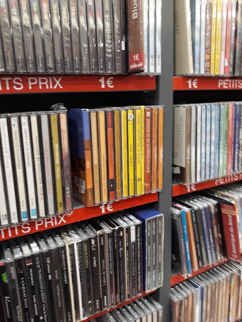 Un peu compliqué de farfouiller dans les CD : les bacs seraient préférables aux étagères. En plus elles sont hautes... Difficile d'accéder aux références les plis élevées malgfe mon mètre 76. Mais les prix sont sympa.