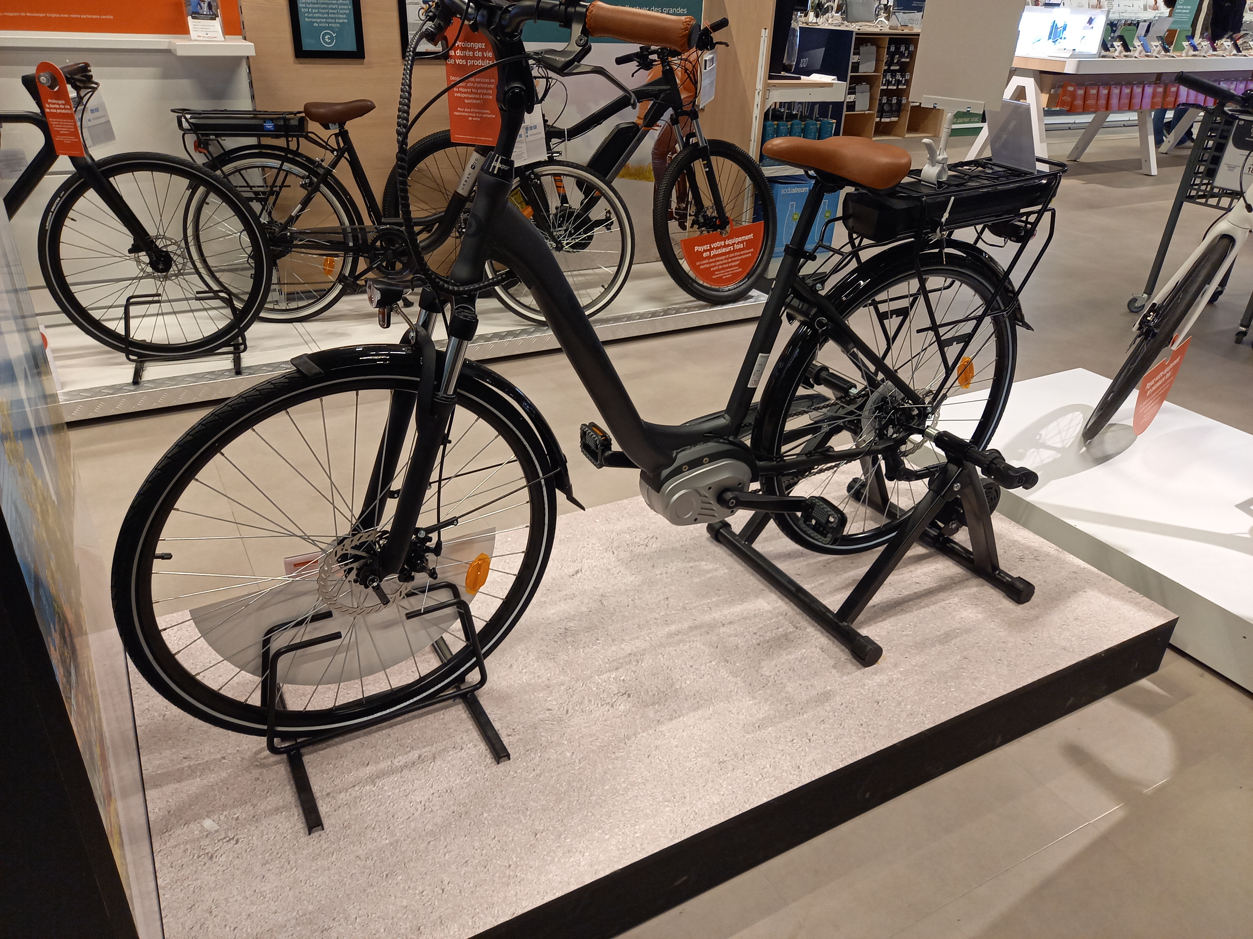 Boulanger vend des vélos électriques...mais le vendeur rayon est incapable d'expliquer les caractéristiques du vélo : ne connaît pas la marque ni les caractéristiques du pédalier, de la batterie et si les éclairages fonctionnent avec...bref...et de + se permet de répondre au tel à 1 client qui a 1 souci iPad alors qu'on est en pleine conversation. Nul et Absolument pas professionnel (dommage pr le vélo que je n'achèterai pas ds ce magasin)