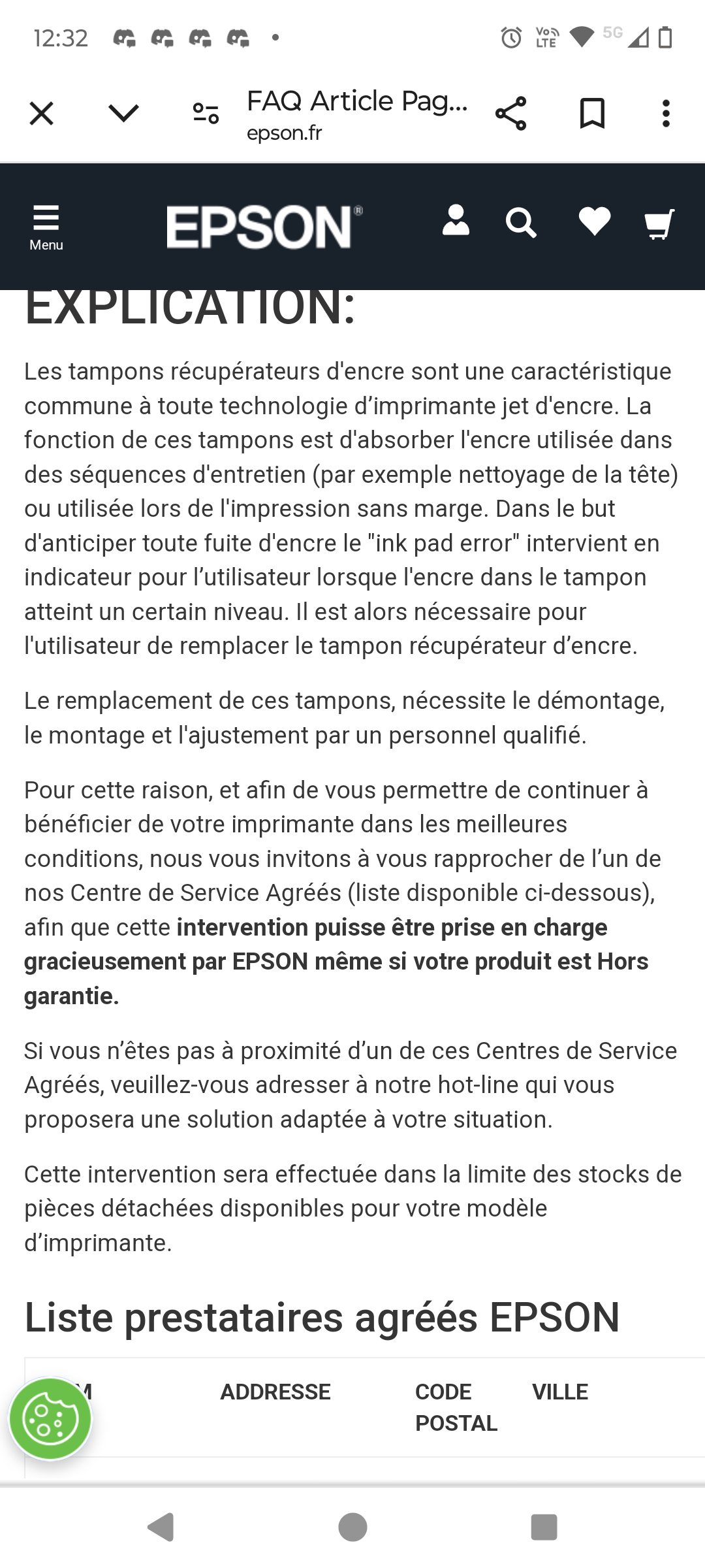Ayant acheté une imprimante Epson il y a quelques années l imprimante m'affiche le message d'erreur changement de tampon, un technicien me dit que ça coûte + chère de les changer que mon imprimante (200€), j'ai contacté la marque Epson il font le remplacement gratuitement via un service partner et le tampon sur internet vaut 10€. Bref des voleur Photo du site Epson qui le fait gratuitement vs boulanger qui me dit que ça coûte + de 200€