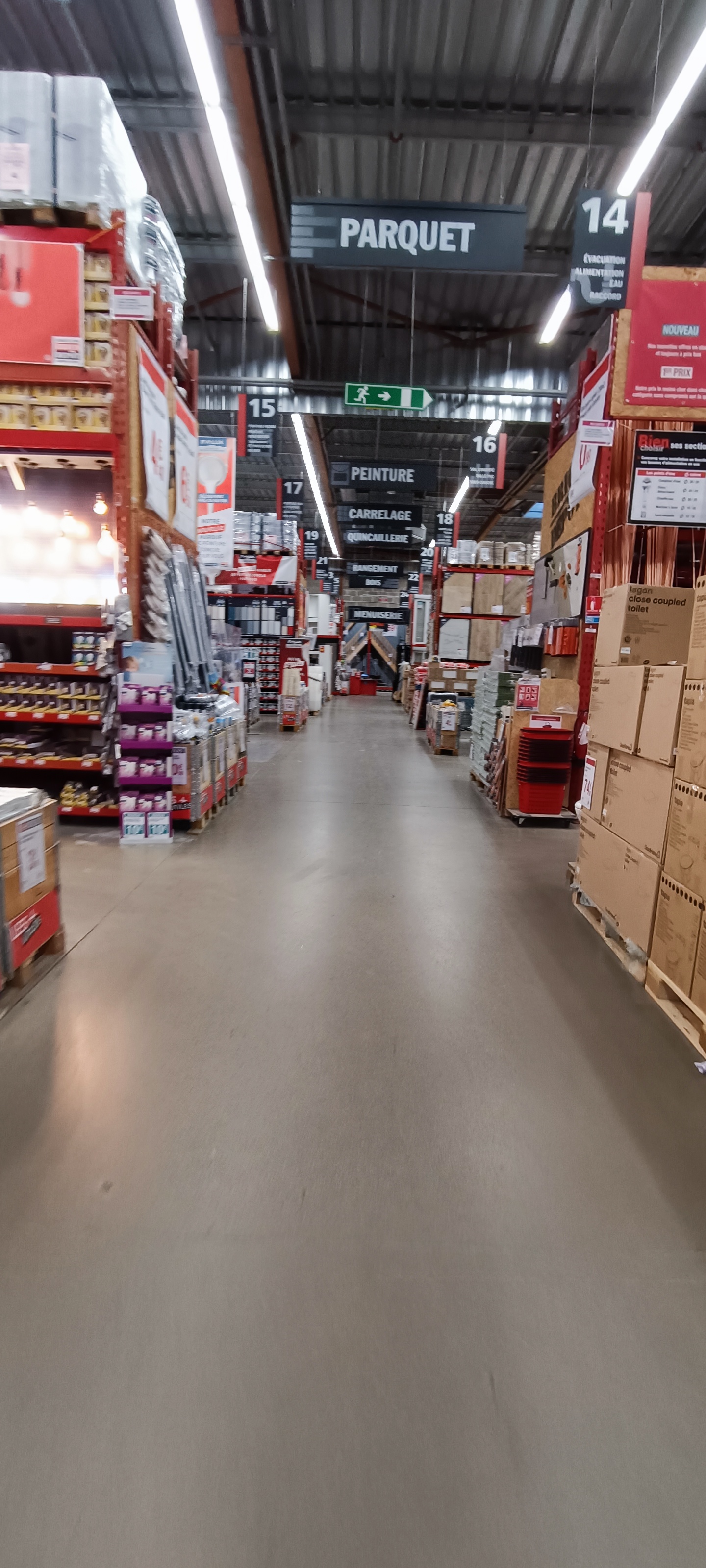 Rayon Menuiserie: très mauvais accueil, très mauvais conseil désagréable et incompétent. Interpellés par une caissière alors que nous avions bien les masques, mais pas une assez grande distance a son goût: un vrai chien de garde ! enfin elle devrait faire plutôt agent de sécu !!