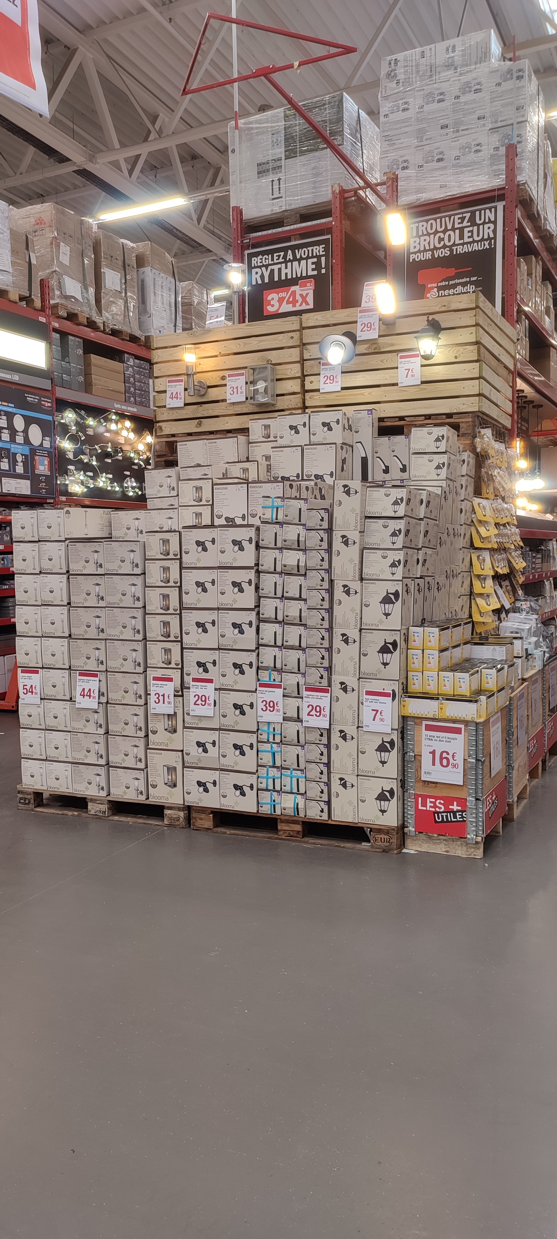 Tarifs attractifs, large choix, gammes de produits et de prix pour toutes les bourses, mais pas où peu de vendeur, il faut être autonome. Sil manque un article en rayon, pas facile d'avoir le vendeur adapté et compétent. Mais bon, il faut faire avec, si on est pas content, on va a Leroy Merlin.