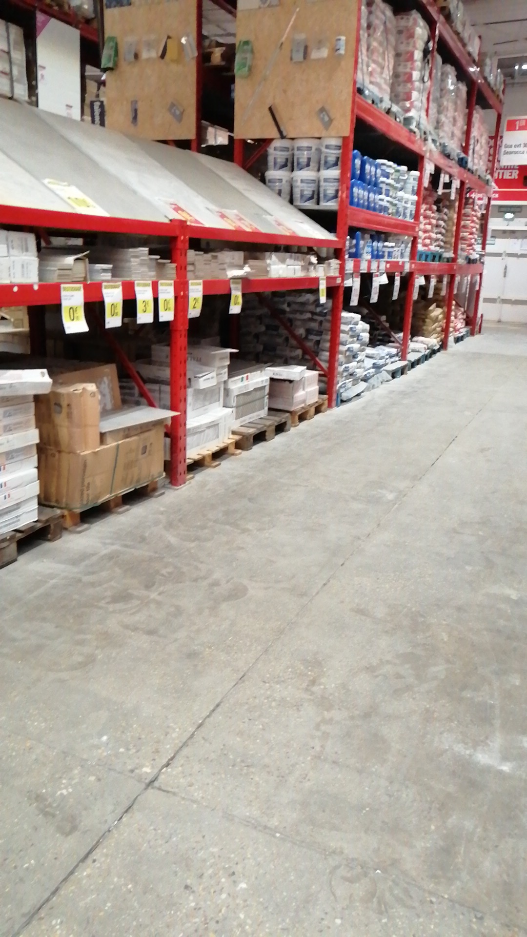 Très bon magasin mais mauvais jour suite à une descente de palette pour récupérer le contenu on sait fait subtilisé 6 paquets le temps que l homme de sécurité ouvre les barrière et que je revienne avec le caddy adapté comme convenu grosse tristesse j étais venu avec ma maman pour qu'elle choisisse elle même son carrelage (en vérité grosse boulles) voilà super