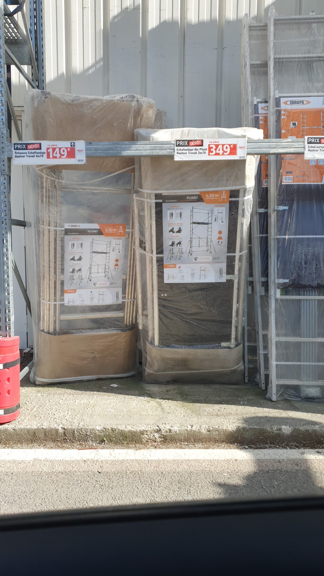 Tarif attractif mais côté matériaux extérieur, c'est Tchernobyl !! C'est rangé n'importe comment ! Le casser avec le neuf, en vrac, c'est brulé par le soleil. Je voulais prendre des cornières de finition pour terrasse bois, c'était tellement brûler par le soleil qu'en le touchant ca se casser.