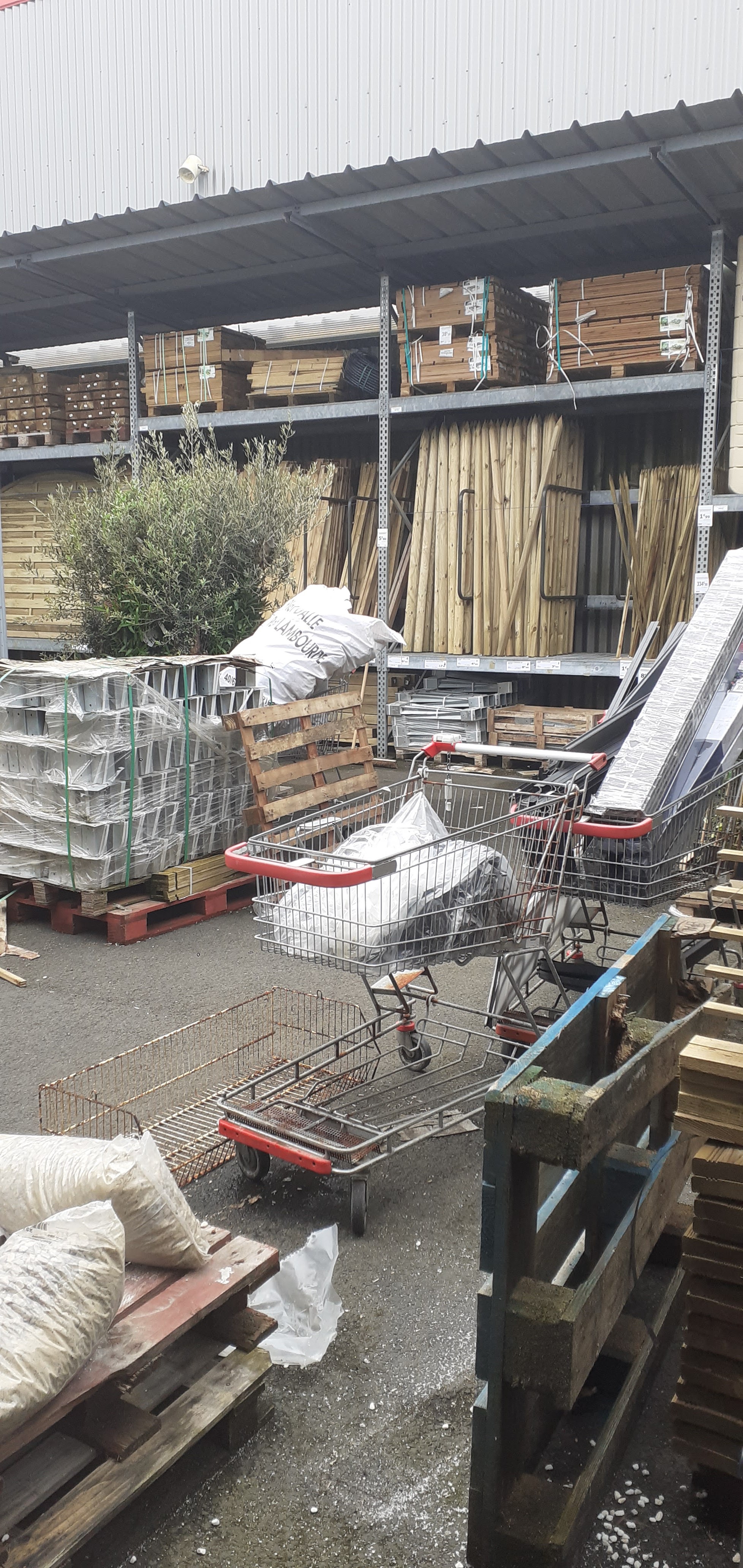 Je suis passé ce matin pour voir et éventuellement acheter de quoi faire une terrasse en bois Le rayon (enfin la.cour extérieur) est dans un état lamentable, il y a des palettes partout, les lame de bois sont pourrie, il faut enjamber des paniers, contourner des caddies plein de je ne sais quoi... vraiment on a l impression d un dépôt à l abandon Fuyez ça fait vraiment peur