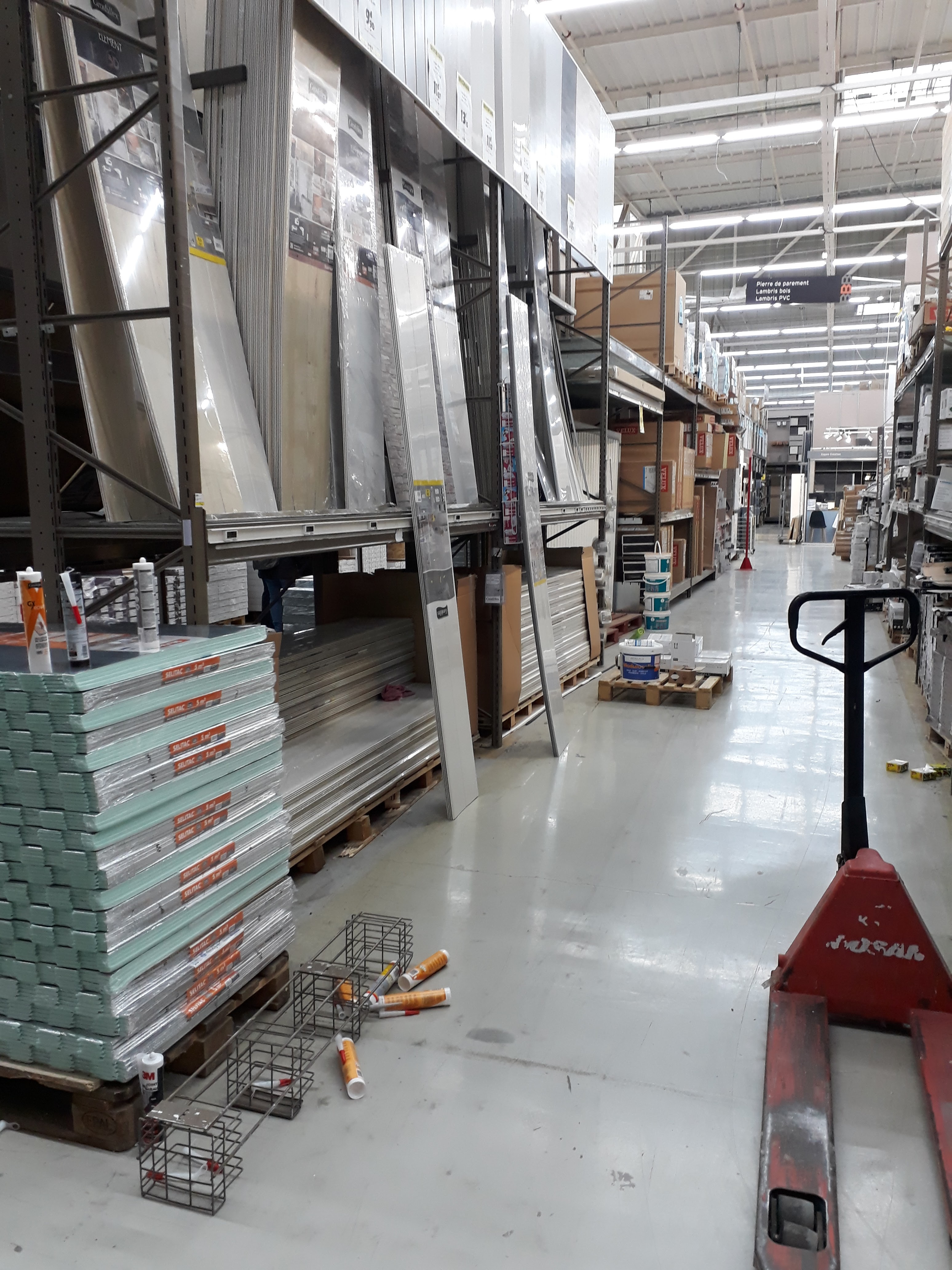 Je recherche du parquet, je n'ai jamais Vu des rayons aussi mal entretenu que celui de la menuiserie. Une horreur de danger ! Une personne à la coupe est assise tranquillement au lieu de ranger. En revanche aimable avec les clients. Les autres rayons sont parfaitement rangé. Il manque de vendeur partout. Pourquoi ouvrir le dimanche après midi dans ce cas ? J'ai vu également à l'entrée que vous recherchiez du monde... vivement qu'ils arrivent tout jeune et tout beau avec plein de motivation. Les machines cafés sont écrites HS et j'ai vu un vendeur en prendre et s'installer... les clients.. interdits !! Et également des scies à la disposition des clients et des enfants !!
