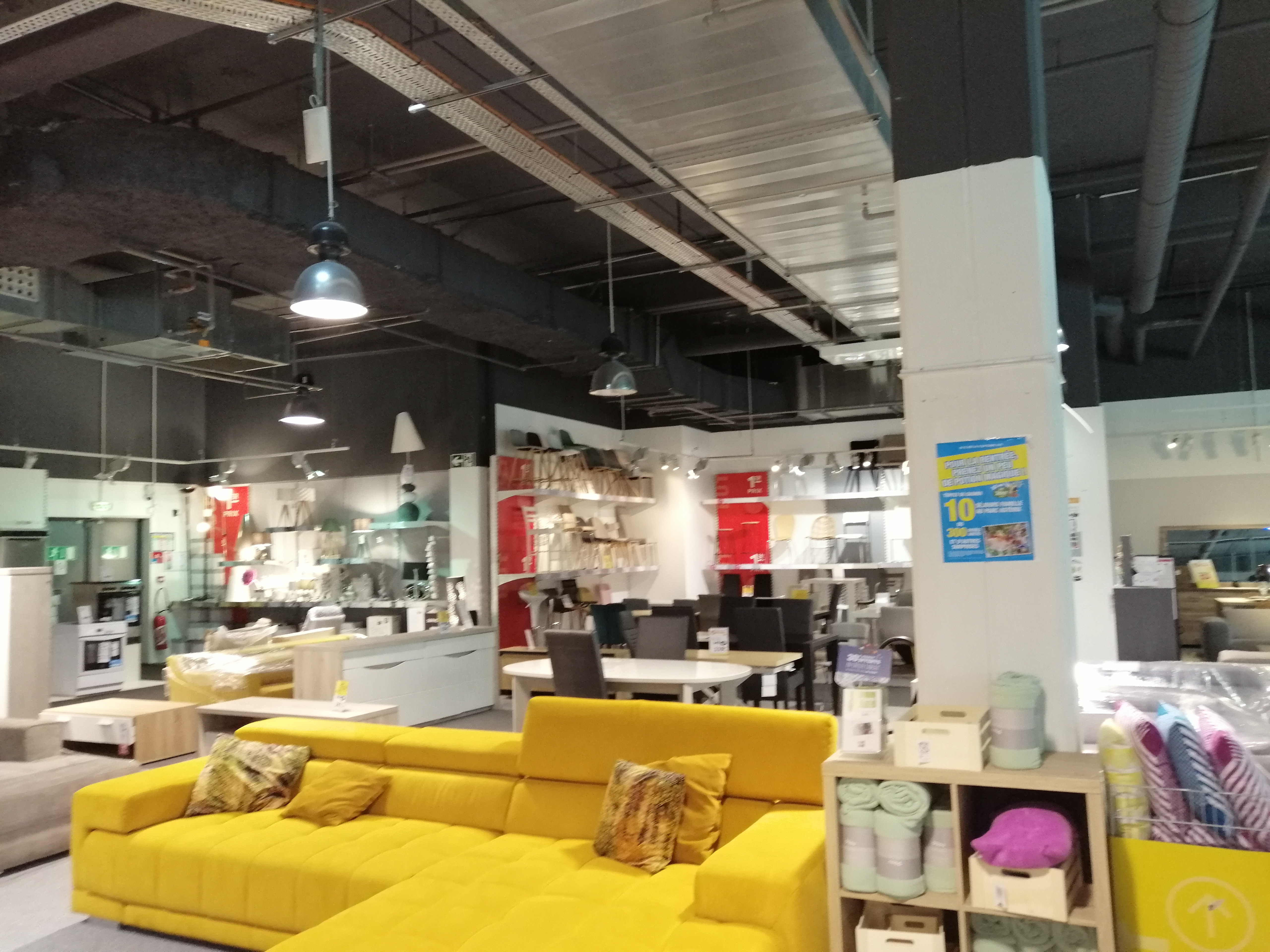 Magasin dans un état déplorable. Des clous visibles au mur, papier peint déchiré, et montage des meubles qui montre la non qualité. Je met une étoile par dépit car 4 conseillés de vente magasin et pas un seul bonjour !!! C'était la première et le dernière foi que je viens !!!