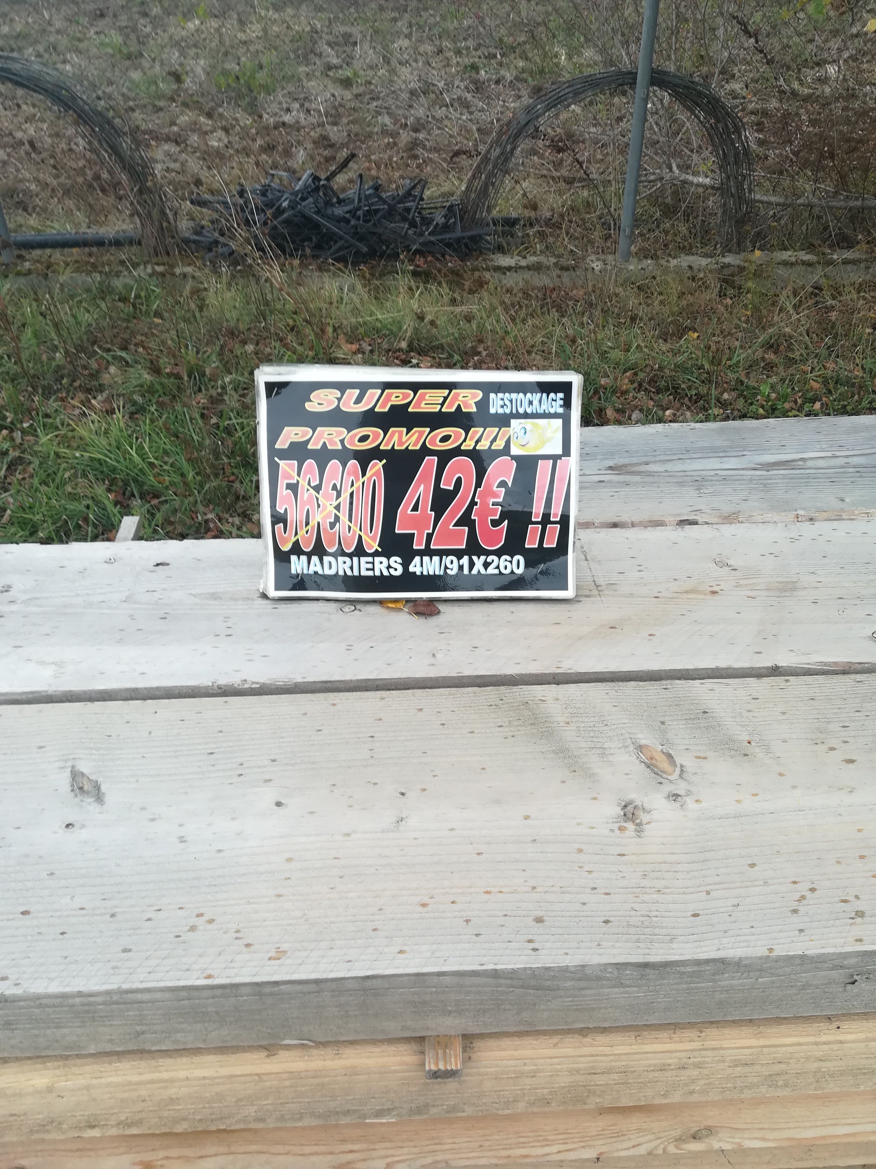 Accueil très sympathique. Vaste choix de bois déclassé. Stock qui se renouvelle régulièrement.
