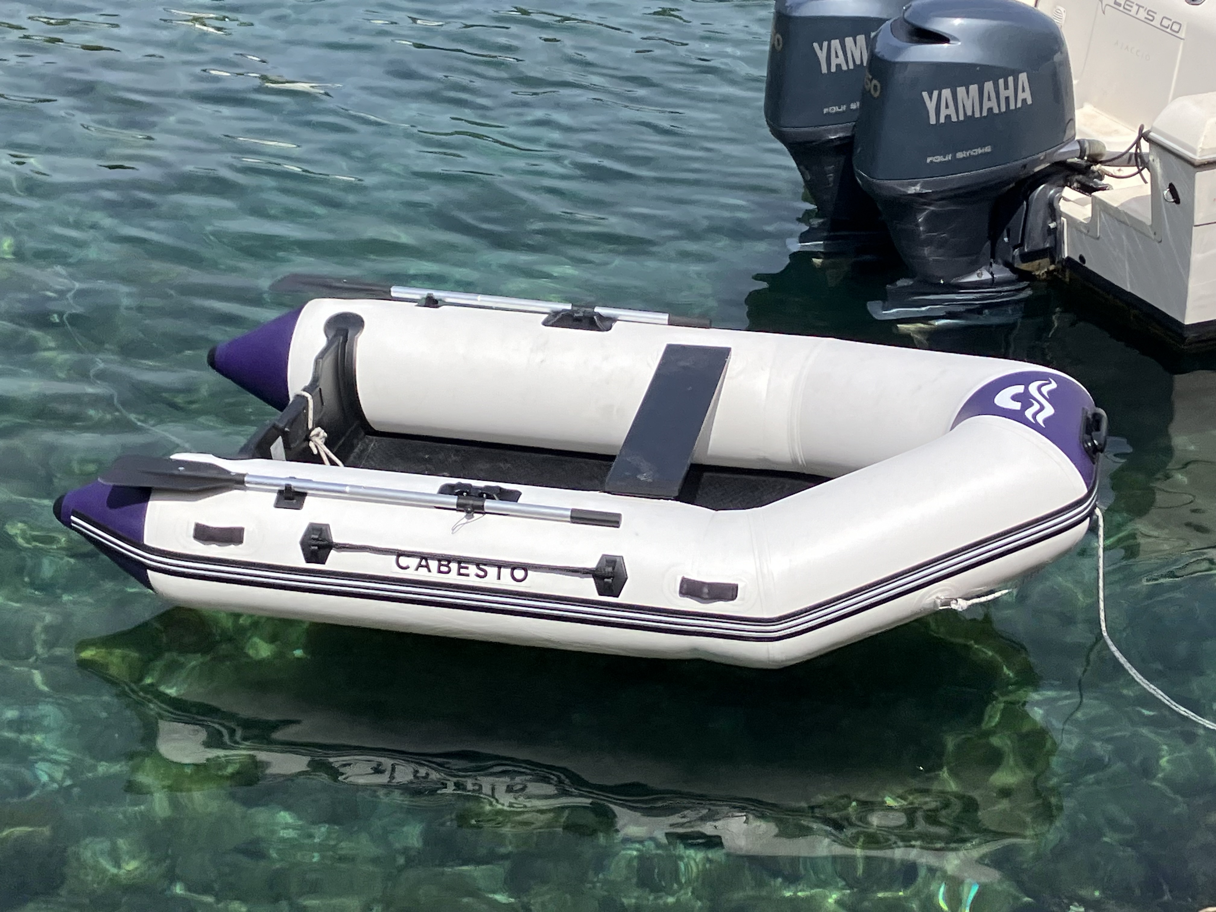 Achat d’une annexe Cabesto c’est marqué en gros dessus au bout de 2 mois d’utilisation très raisonnable le plancher se dégonfle tout seul, il est diagnostiqué, un défaut de fabrication. Un remplacement est prévu, délai indéterminé deux voir trois semaines minimum. Il paraît que je m’en sors bien… En attendant je peux toujours rejoindre mon bateau à la nage.