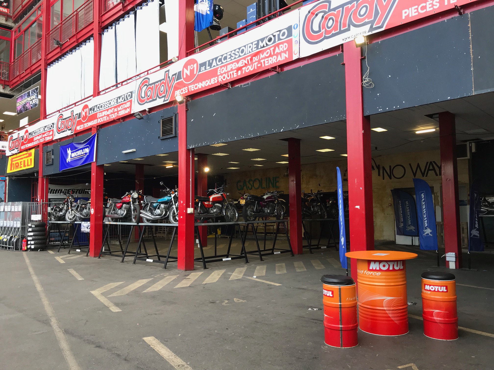 Le gros avantage est la taille du magasin , la disponibilite des accessoires autant en consommable qu en pneus et equipement et il y a des toilettes pour le public et ça c est très rare dans un magasin de moto .
