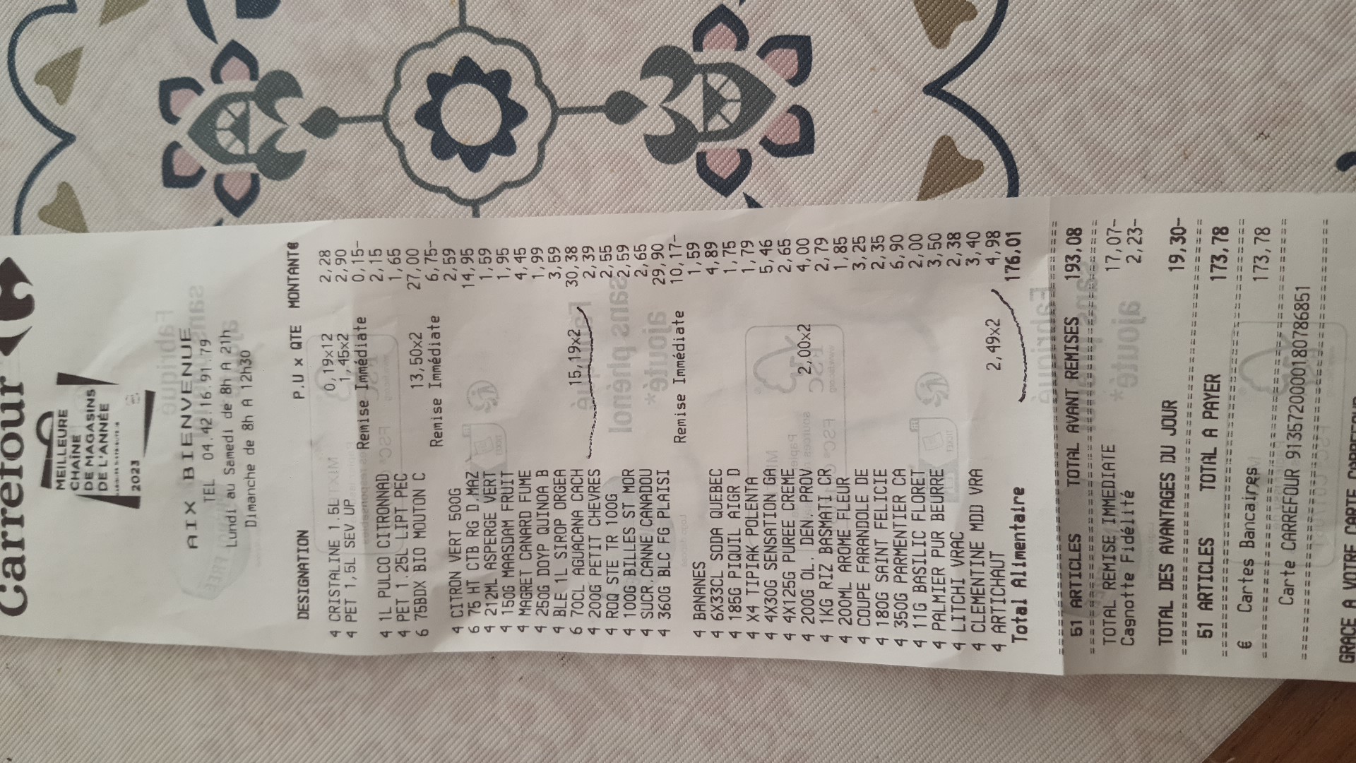 Constats après 1 an chez Carrefour Aix : Madame et 1 des monsieur de la sécurité me traitent comme si j'étais un voleur, mais en réalité je suis l'un de vos meilleurs clients qui a dépenser des centaines de milliers dans votre magasin. Je n'apprécie pas du tout quand ils gardent mes tickets de caisse quand ils le souhaitent. C’est vraiment pas professionnel. Si cela continue, j'irai faire mes achats à Carrefour Vitrolles. En revanche, merci au service image et son pour son écoute, sa gentillesse et son professionnalisme. Toujours là pour m'aider.