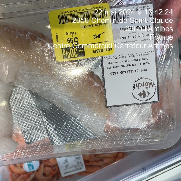 C’est du vol sur les produits en fin de date de vente : à l’entrée du magasin le dos de cabillaud est à 16,99€ le kg et dans les rayons produits fin de vente il est à 27,99€ Même avec la remise il est encore plus cher c’est scandaleux Je l’ai signalé à la personne qui mettait en rayon les produits en date fin de vente il m a répondu que c’était pas son problème w peut être sur nous aurons une réponse ici