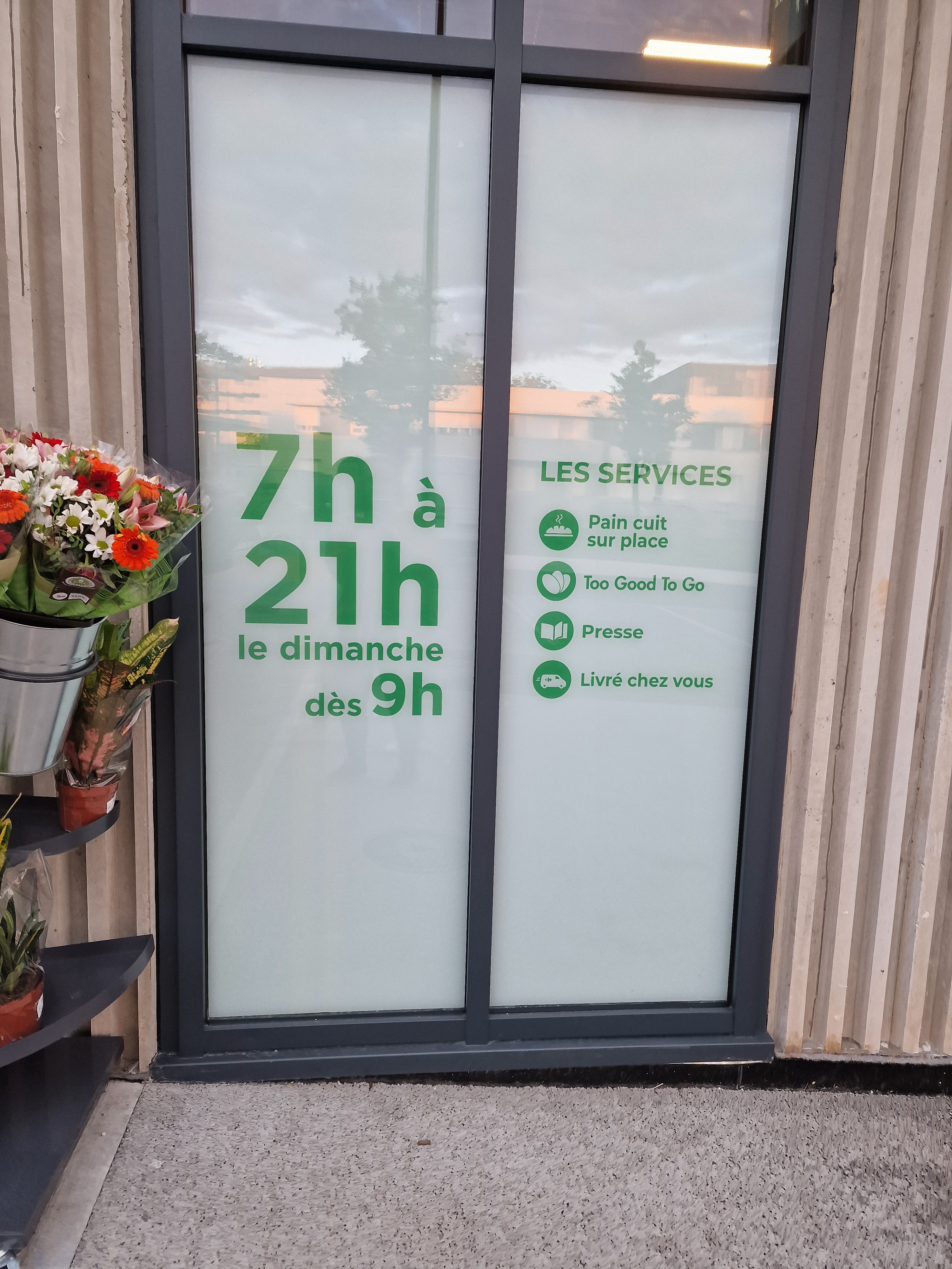 Carrefour city très bien achalandé. Beaucoup de choix. Parking. Horaires étendus.