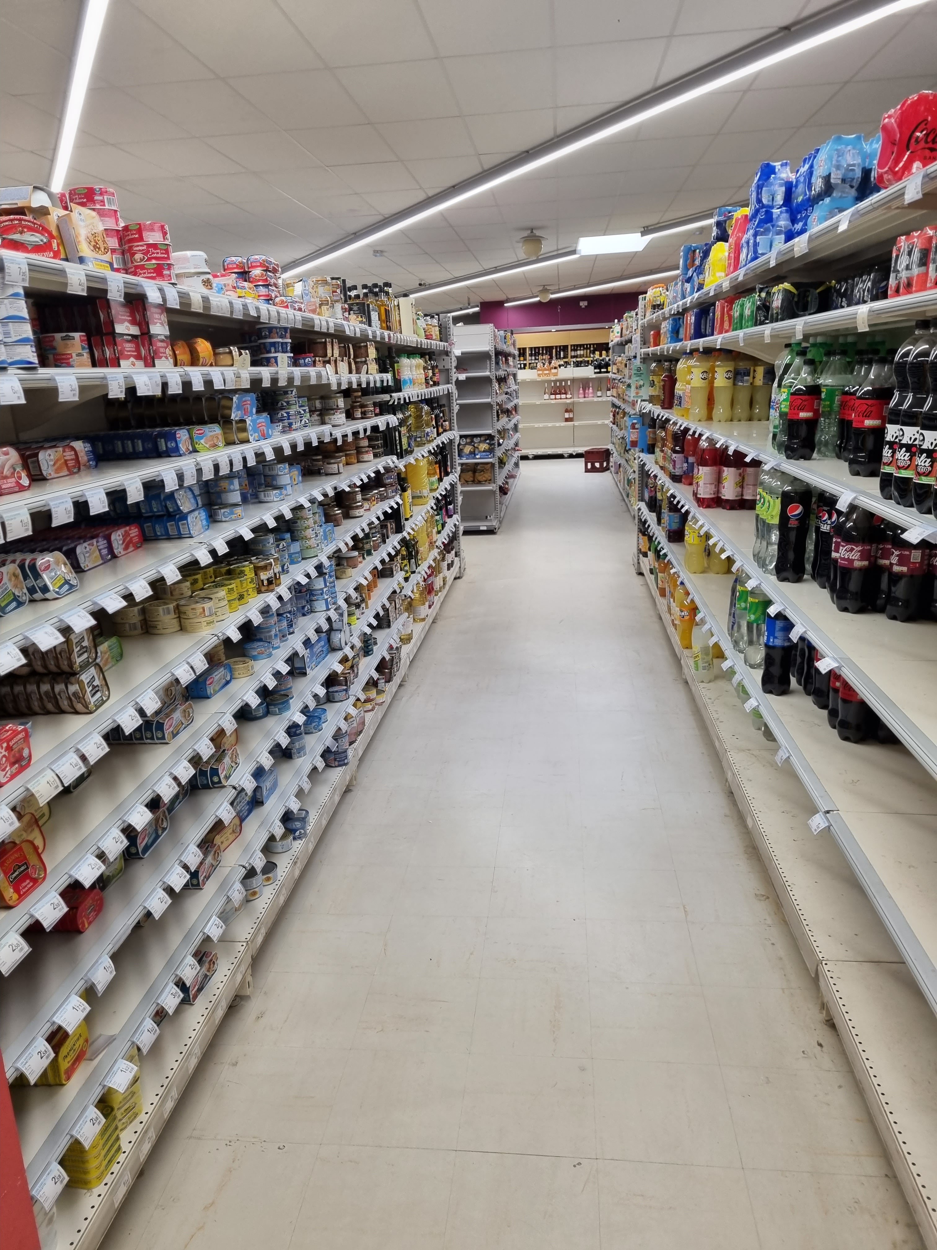 Petit supermarché avec tout le nécessaire. Personnel souriant.