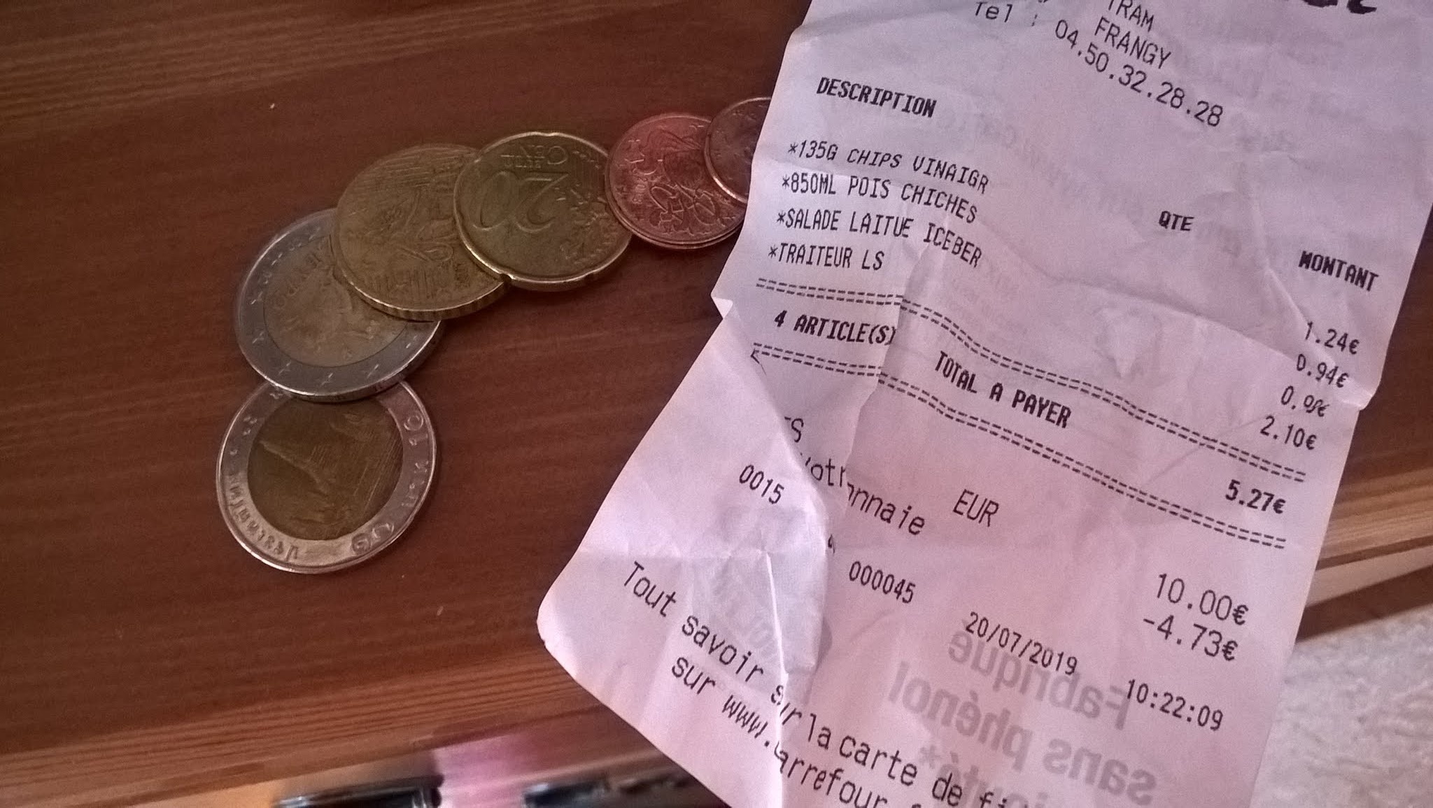 J'ai fait mes courses samedi 20.7.19, et en rentrant à la maison, j'ai vu que l'on m'avait escroqué en me rendant une pièce thaïlandaise au lieu de 2 Euros (voir photo). Je précise avoir sorti un billet de 10 Euros et je n'avais pas d'autres pièces sur moi que celles rendues par le magasin (aucun autre achat effectué ce jour là). Soit le personnel est incompétent, soit il se débarrasse de faux euros auprès des clients (=mise en circulation fausse monnaie).