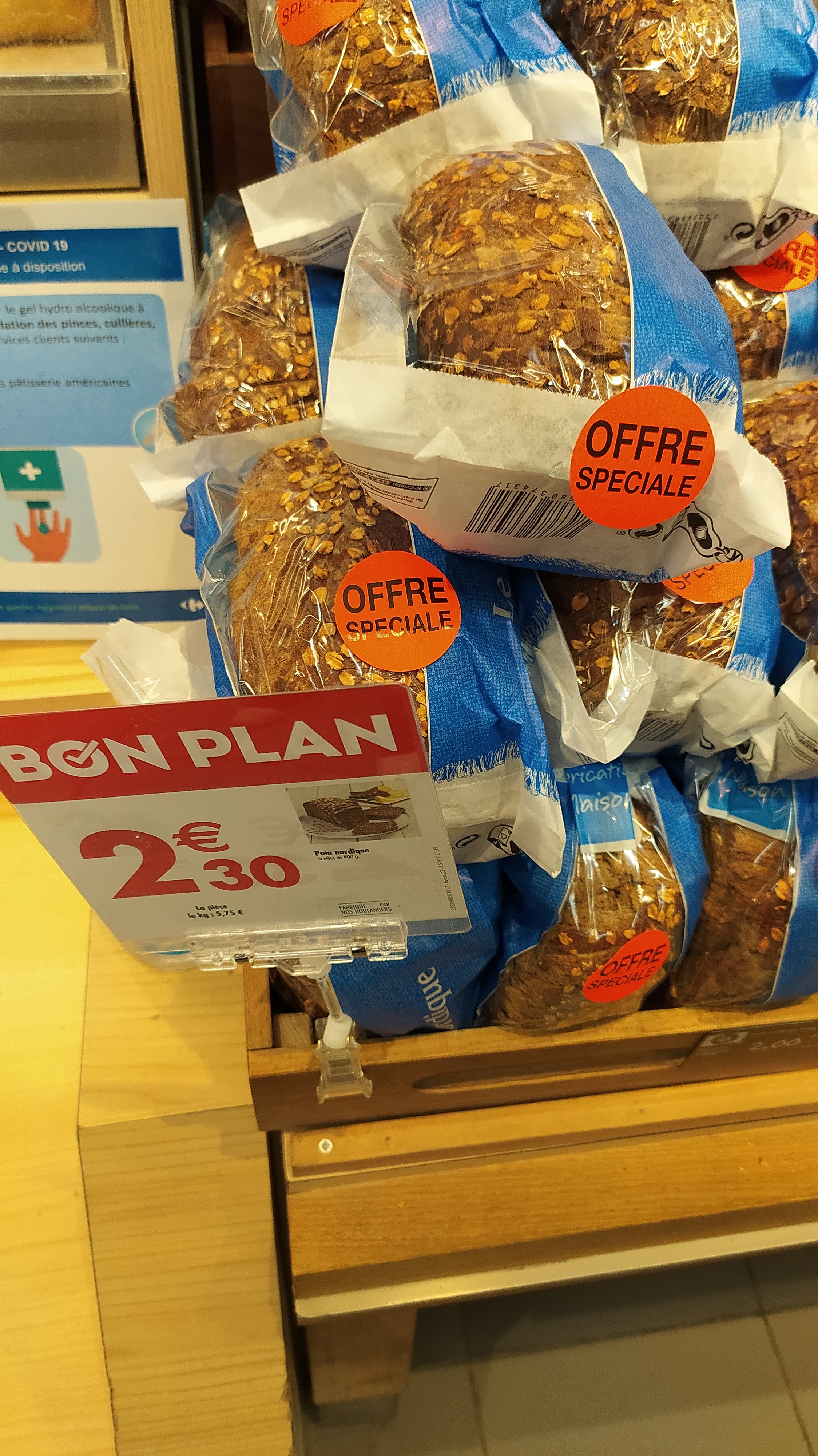 Aujourd'hui, 15 septembre 2020, Carrefour Écully, rayon boulangerie, le pain nordique qui était depuis des mois à 2 euros est passé à 2 euros 30. Ils ont augmenté le prix de 30 centimes, soit, c'est leur choix d'appliquer une hausse de tarif. Ce qui est très rigolo c'est le panneau bon plan qui a été rajouté et l'étiquette offre spéciale orange collée sur le produit. Je ne savais pas que le magasin célébrait ses augmentations de prix en faisant croire aux consommateurs que le prix était en baisse, si ce n'est réduit !! Nous comptons sur votre compréhension et restons à votre disposition. J'ai bien lu votre réponse. Hier j'ai demandé à un boulanger de ce rayon si il n'y avait pas une erreur. Il m'a répondu que NON!! Il répond à une directive nationale pour uniformiser les prix. Le bon plan et l'offre spéciale n'étaient dès lors pas très judicieux !!