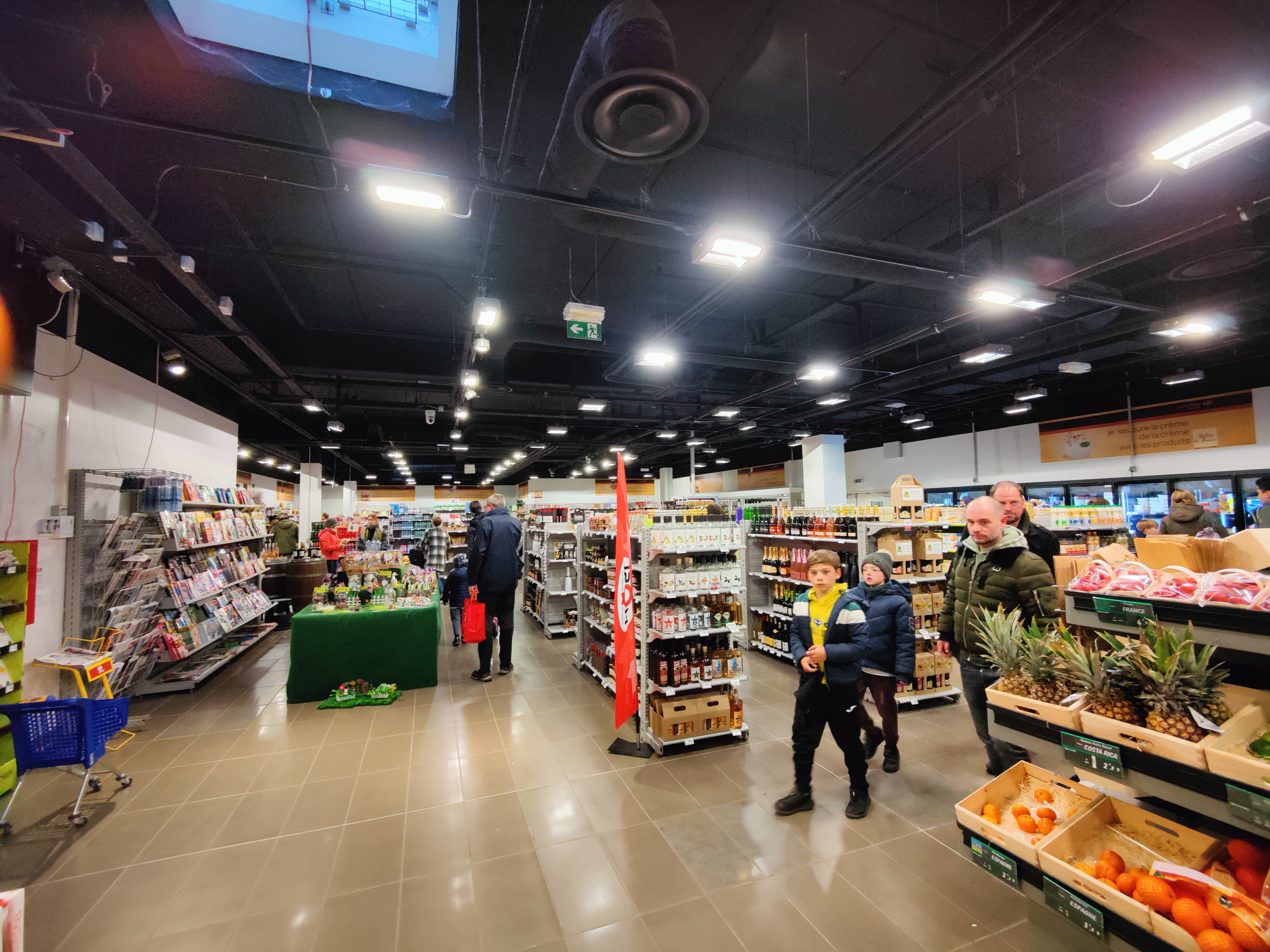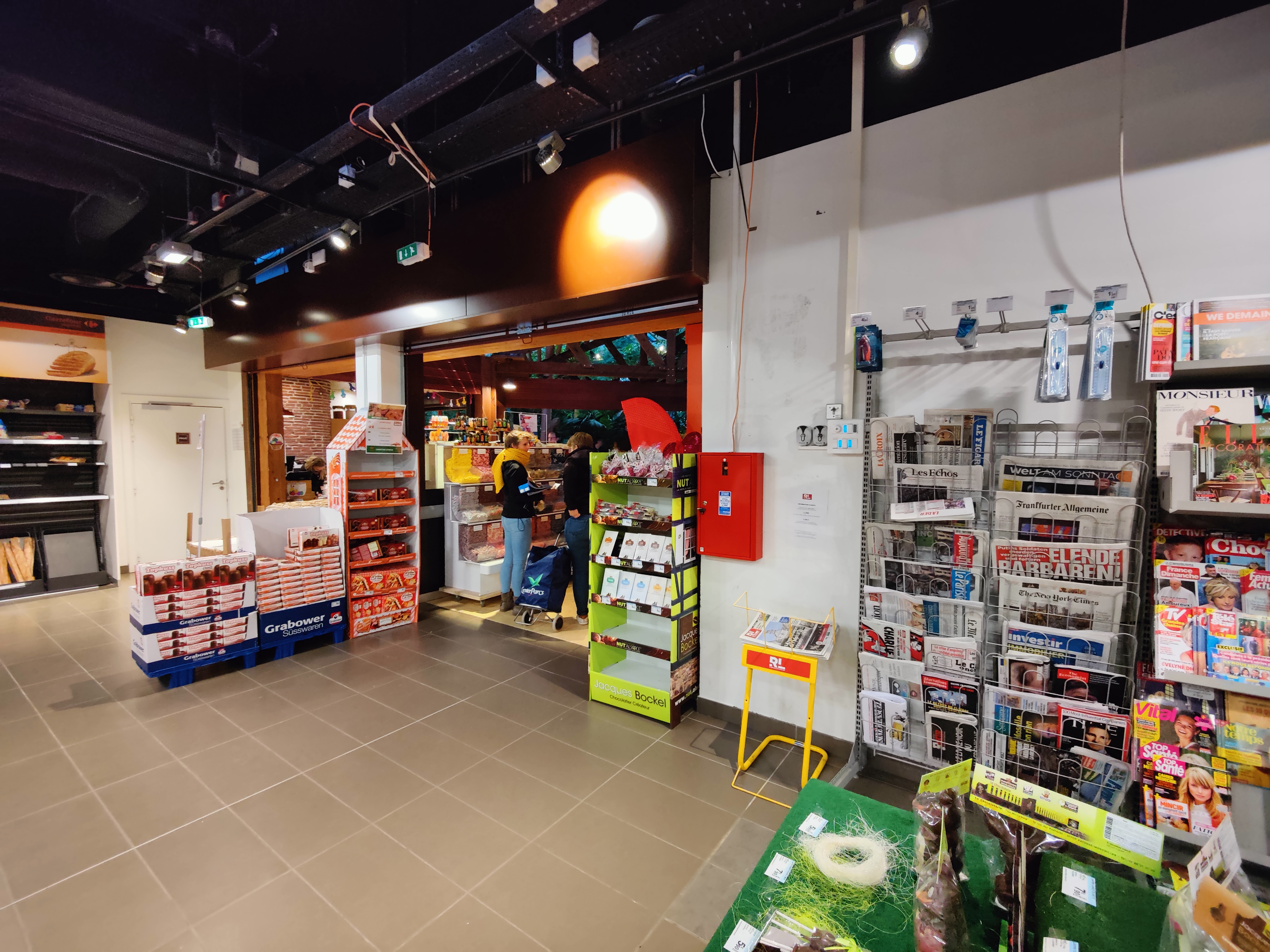 A une portée étonnamment large. Bon pour faire du shopping. Un peu plus cher qu'en dehors du complexe mais ok. Cuisiner soi-même est un incontournable à Center Parc car la restauration est vraiment mauvaise. Tout cela est un peu sombre.