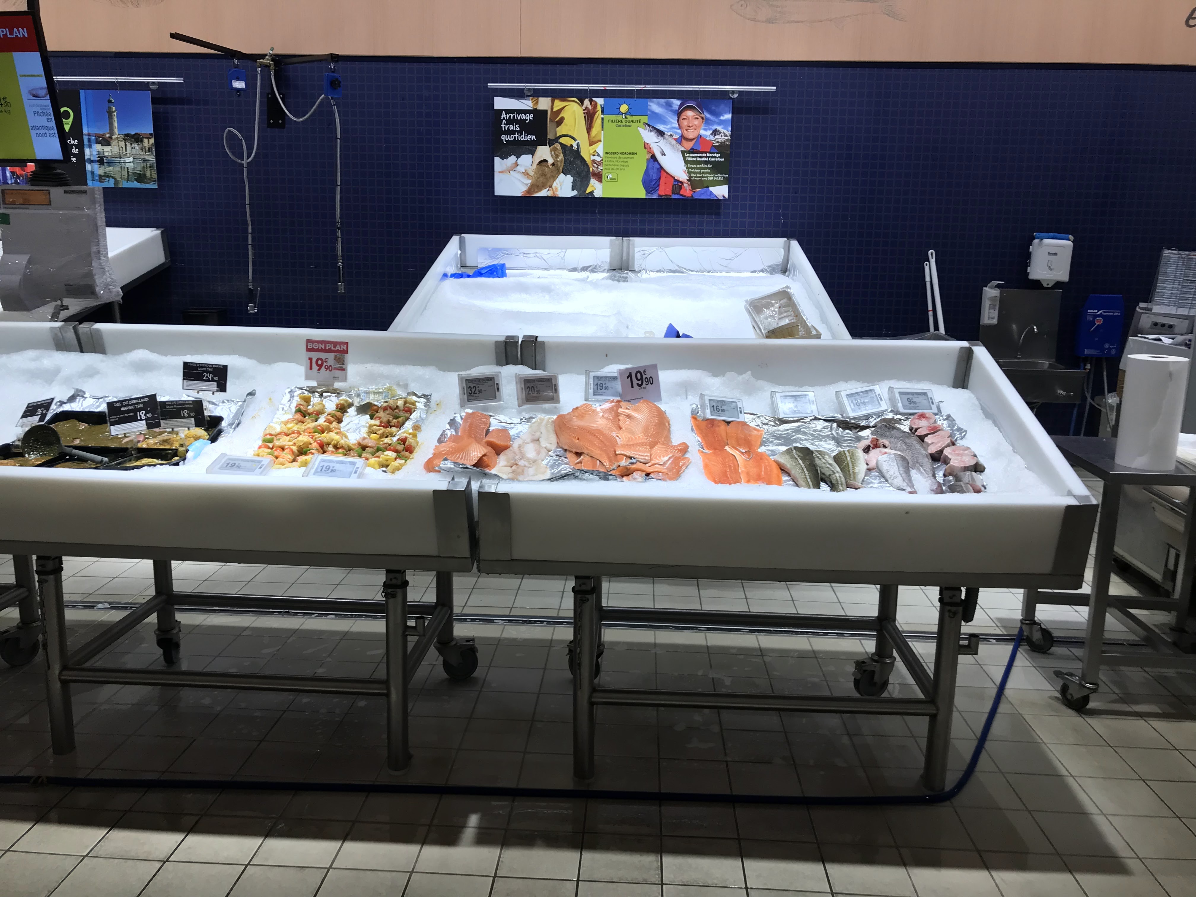 19h30. Je vois la poissonnerie remballer. Je demande poliment à l'employé, si sa serait encore ouvert. Celui ci me répond hautainement et méchamment gratuitement. Vu l accueil, j ai n'ai rien pris et en plus j'ai laisser mes courses. Je suis aller ailleurs dans un magasin du coin plus accueillant.