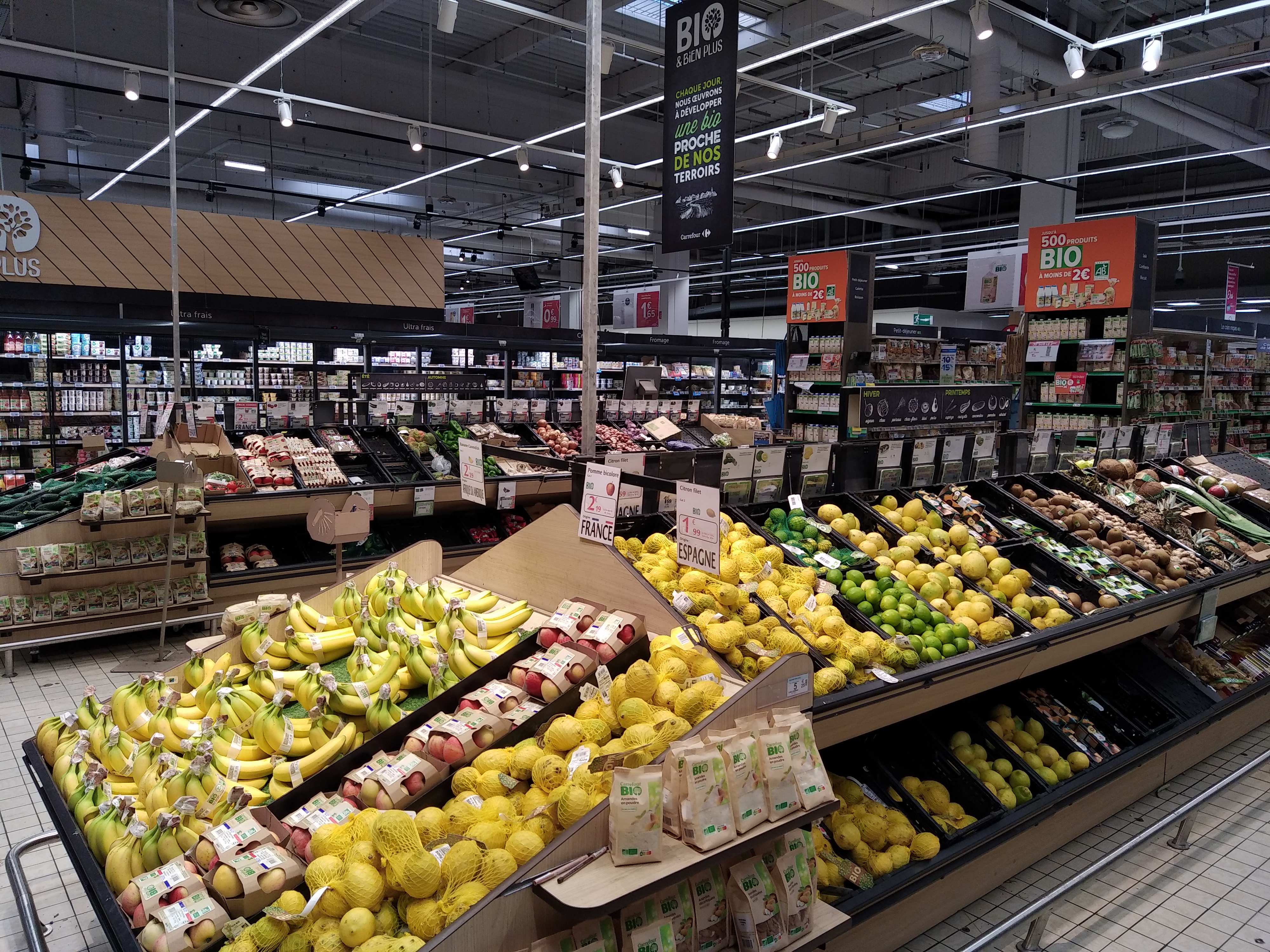 Qu’est-ce qu’il est beau et bien ce carrefour. Il offre une grande gamme de produits bien présentés et à des prix convenables sauf pour les fruits prédécoupés. Je pourrai m’y balader des heures !