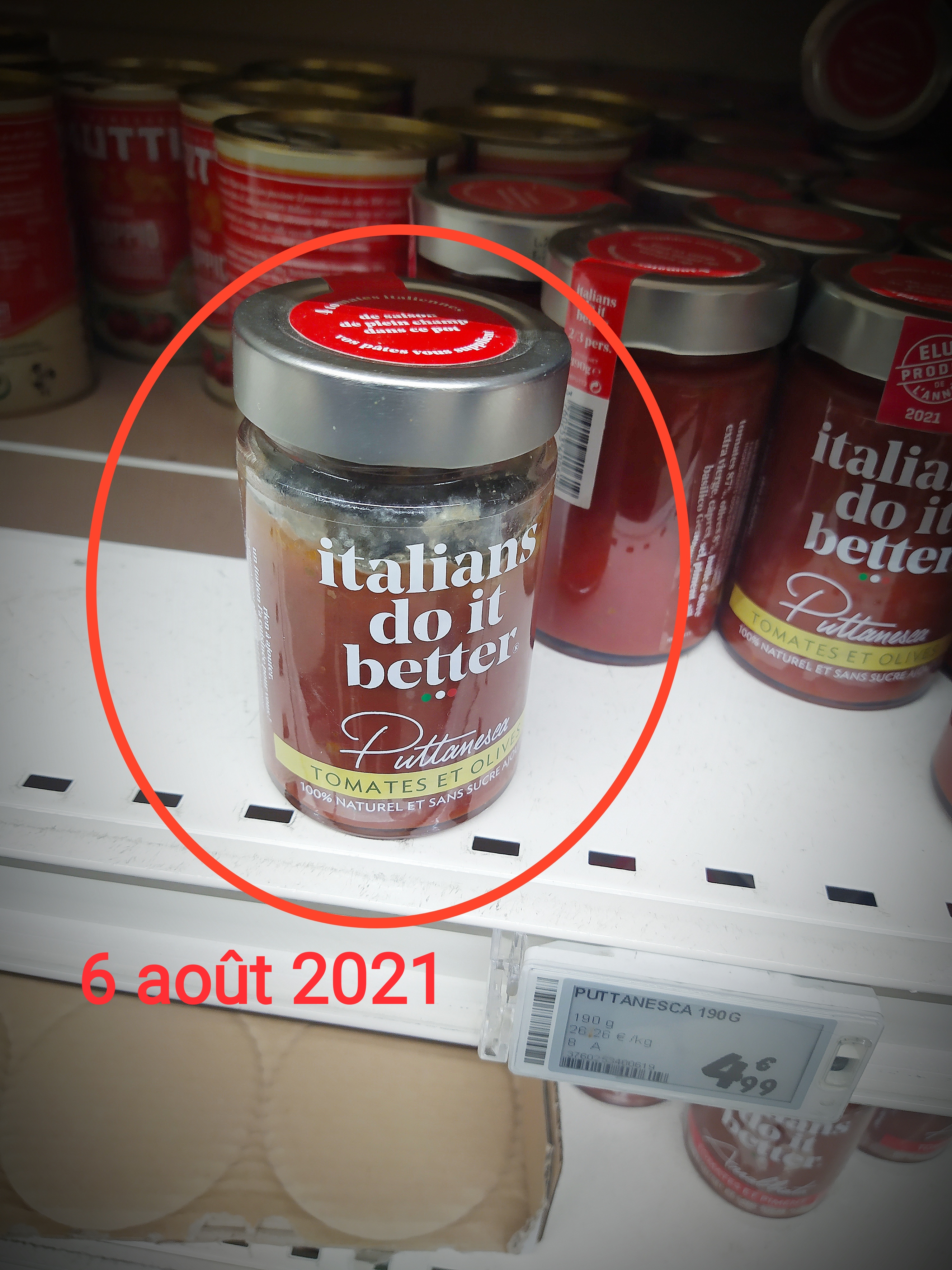 0,92 x 6 = 5,52 €, nous sommes d'accord ? En caisse, le pack de 6 vous sortira à 7,62 €... Tout simplement parce que CE N'EST PAS le produit dont le prix est indiqué au dessus avec grosses flèches rouges pointant vers lui. Mais, déjà, en temps normal, qui irait vérifier que les indications et numéros de code barre correspondent ; et ici, comme vous pouvez le voir, tous ces éléments sur l'étiquette sont EFFACÉS, donc vérification impossible... En caisse automatique, vous vous en rendrez peut-être compte, et demanderez l'annulation du produit comme je l'ai fait. En caisse normale, au milieu de 200 € d'autres achats... vous admettrez qu'il y a peu de chances. Et ce n'est pas la première fois dans cet établissement, pour ne pas dire que c'est courant... Soyez très attentifs.